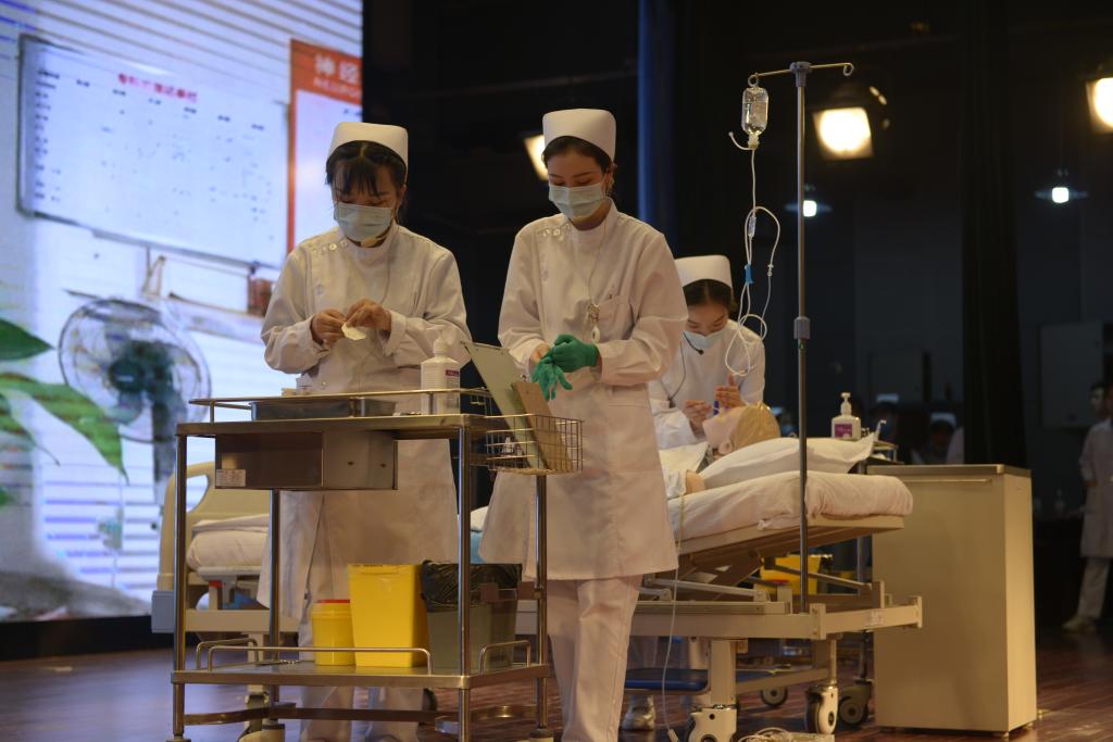 开场诗歌朗诵《致白衣天使》表达了对护士无私奉献的精神以及高尚品质的赞扬。接下来,三组同学以精湛的护理技能操作向大家展示了临床上常见的三个案例。随后,辛霞老师点评了三组学生的操作,肯定了老师与同学们台下的努力。同时也对护理系毕业生提出了希望,希望她们在今后的工作中,脚踏实地,严谨求真,为护理事业的发展贡献自己的力量,并对在校生给予了美好的祝福和殷切的期望。