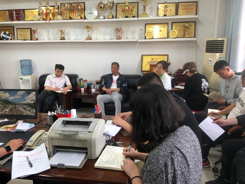 5月12日上午,yl7703永利官网体育部全体教职工在教一C424办公室召开第十二届运动会工作总结会议。会议由体育部主任金学斌主持,副院长朱旭参加会议并讲话。