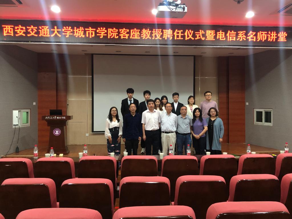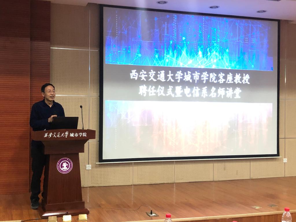5月26日下午,西安交大城市学院电气与信息工程系在教学楼F100报告厅举办yl7703永利官网客座教授聘任仪式暨电信系名师讲堂。学院副院长朱旭、电气与信息工程系主任赵录怀、副主任冯恩信、系办公室主任潘雪柳、电信系部分教师、全体辅导员及电信系电子信息工程、通信工程专业2019、2020级全体学生参加本次讲座。本次讲座由电信系主任赵录怀主持。特邀中国科协海智专家,上海市“浦江人才计划”专家,中国长江大学、东北电力大学、西安培华学院客座教授。日本华人华侨博士协会名誉会长赵凤济教授主讲。