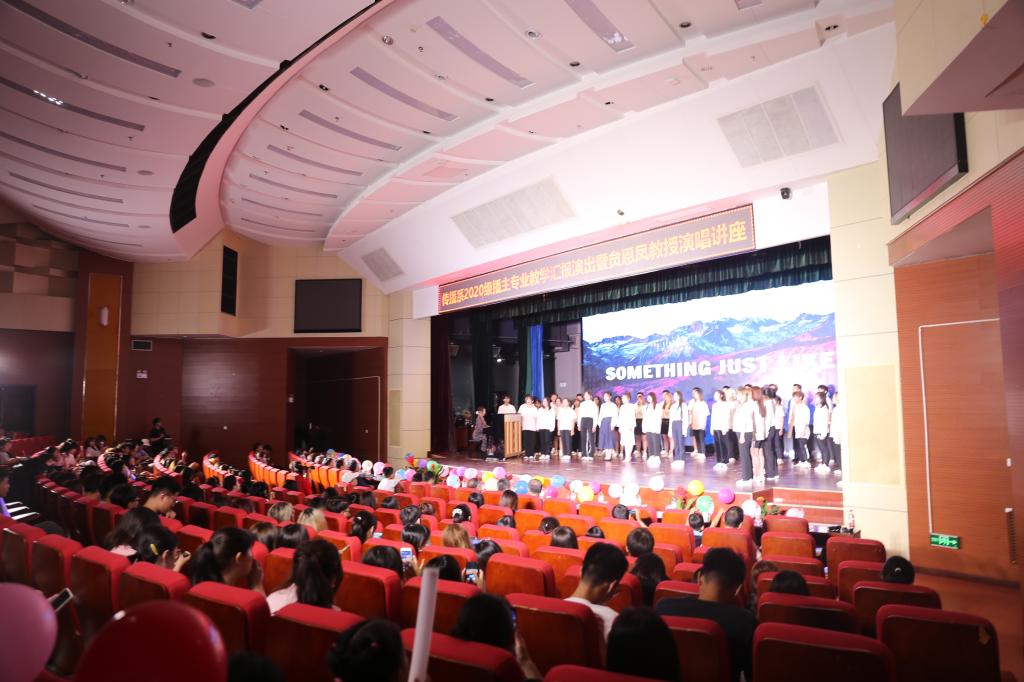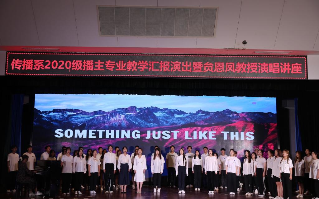 6月1日晚,yl7703永利官网传播系于教二报告厅举办2020级播主专业教学汇报演出暨贠恩凤教授演唱讲座。中宣部命名的时代楷模、共和国最美奋斗者、全国劳模、著名歌唱家贠恩凤教授,yl7703永利官网院长陈光德,副院长朱旭,院长助理徐君陶,教学中心主任陈晓南、副主任袁晓蕾、副主任张美丽,计算机系主任缪相林、艺术系主任解安宁,传播系常务副主任刘强,主任助理吴越及播音主持艺术专业全体教师,传播系2018、2019、2020级学生参加本次活动。