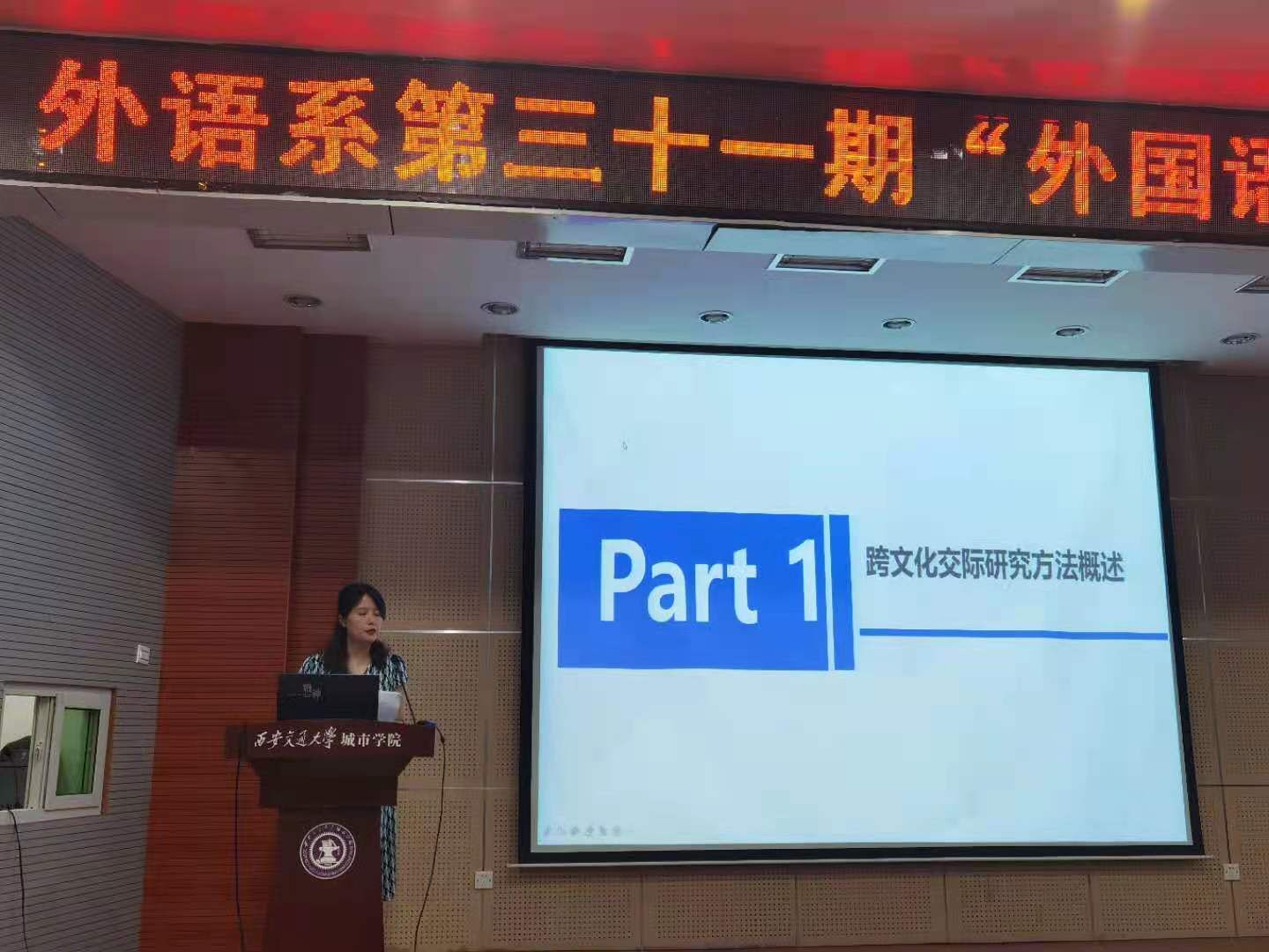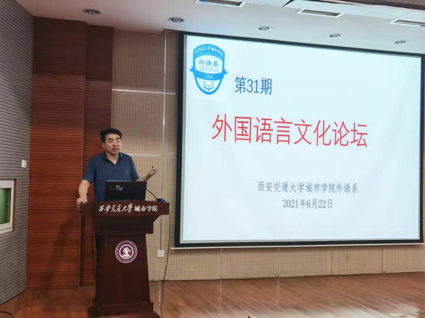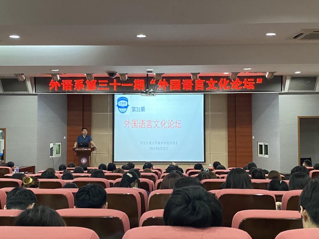 为营造我院外语语言及文化研究氛围,拓展我院师生的语言学习视野,6月22日下午,西安交大城市学院外语系在学院F100报告厅举办了第31期“外国语言文化论坛”讲座。学院副院长朱旭教授莅临指导。外语系副主任徐素云副教授主持并介绍了近年来我系在科学研究、人才培养尤其是在重要科研立项、项目申报质量,以及高级职称晋升等方面所取得的突破。