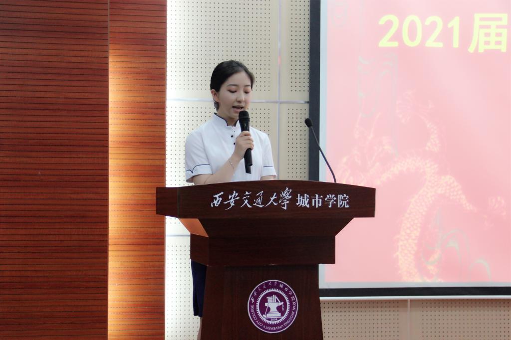 在建党百年之际,在2021届毕业生毕业之时,6月29日下午,西安交大城市学院在F100报告厅举行2021届毕业生校友联络员聘任大会。学院院长陈光德,学院副院长、基金会秘书长兼校友办公室主任岳华海,学院保卫部部长兼校友办公室副主任陈涛,校友工作办公室相关工作人员及2021届新聘毕业生校友联络员参加聘任大会。大会由传播系罗莹同学主持。