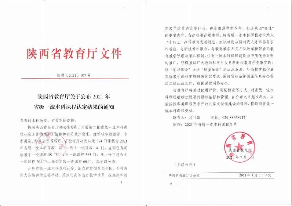近日,陕西省教育厅公布2021年省级一流本科课程认定名单,我校《管理学》等6门课程入选省级“一流本科课程”,《国际经济与贸易》等4门课程推荐参评国家级“一流本科课程”。