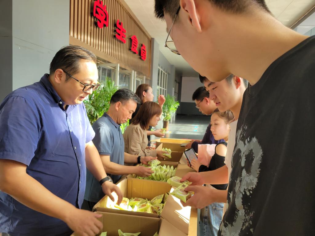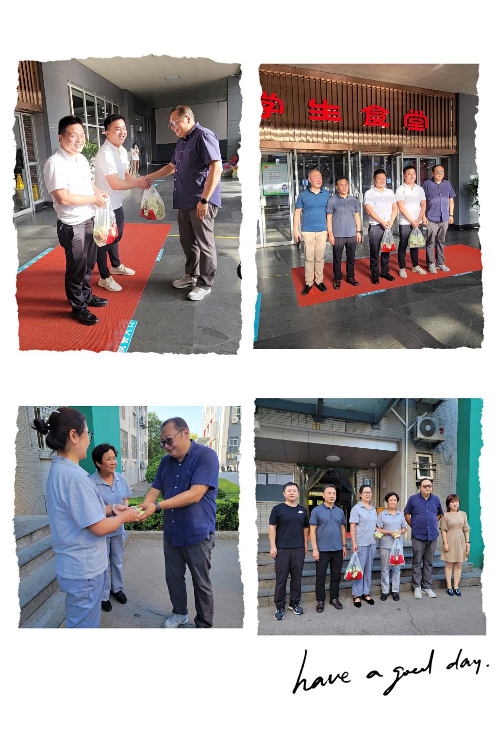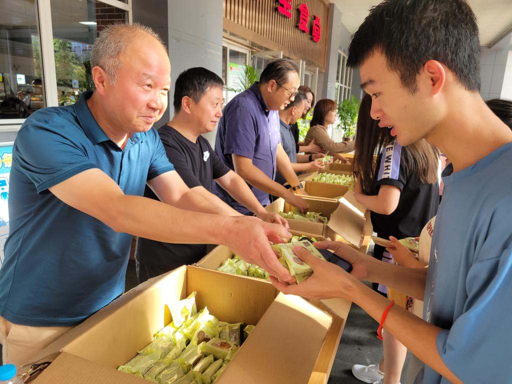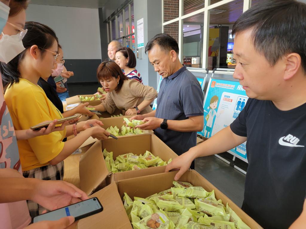 在大学生活动中心楼下,学院党委书记张爱萍和学生中心老师们为留校的同学发放了中秋月饼,将学院的祝福和问候送给了每一位在校学子。精品红豆沙、御品白莲蓉、南洋椰香、精品草莓等口味的月饼承载着学院对同学们满满爱意,让同学们吃在嘴里暖在心里。“这是我离开家过的第一个中秋节,虽然不能跟家人团聚,但学校太贴心了,我爱我的学校!”“学校为我们准备了这么好吃的月饼。收到暖心的礼物真是幸福感满满”几位领月饼的同学们这样说道。同时,张爱萍书记和学生中心主任、副主任一行走访慰问了食堂、学生公寓的值班人员,并为他们送上了节日的温暖。