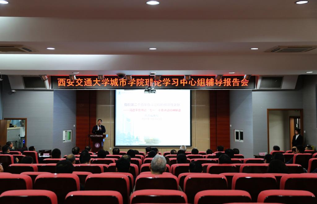 10月7日,yl7703永利官网在F100报告厅开展理论学习中心组辅导报告会,特邀西安交通大学马克思主义学院院长燕连福教授作讲座。学院领导,党委委员,纪委委员,各系(教学部)、中心(部)副职及以上干部、各党支部书记等参加本次学习,活动由党委书记张爱萍主持。