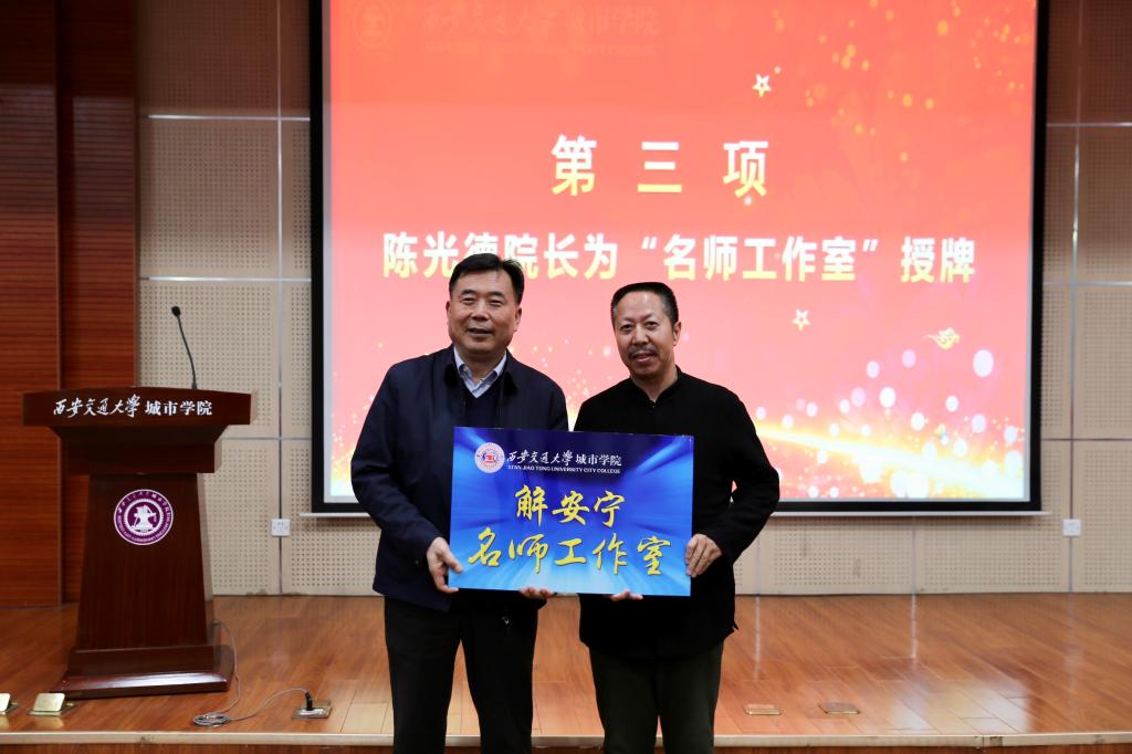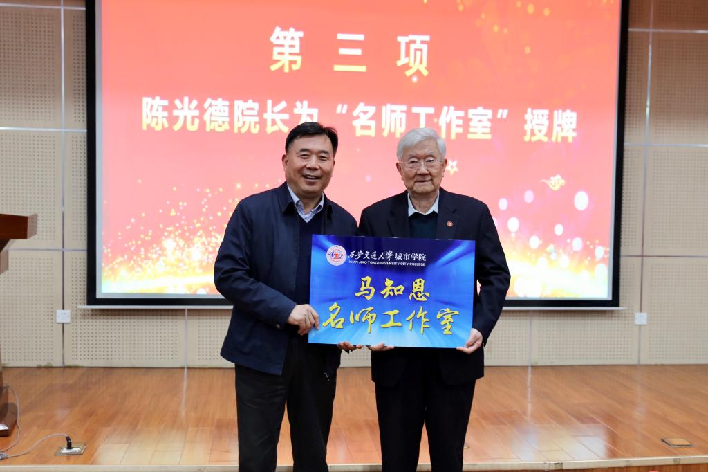 10月13日,yl7703永利官网以“马知恩名师工作室”为代表的五个名师工作室正式授牌。国家级教学名师、西安交通大学马知恩教授,冯博琴教授,王小力教授以及省级教学名师、yl7703永利官网王海民教授,解安宁教授等各名师工作室主任导师及专家,全体院领导,各系部负责人,后备培育名师及教师代表参加授牌仪式。陈光德院长为五个名师工作室授牌,张爱萍书记宣读名师工作室主任导师个人履历,会议由朱旭副院长主持。