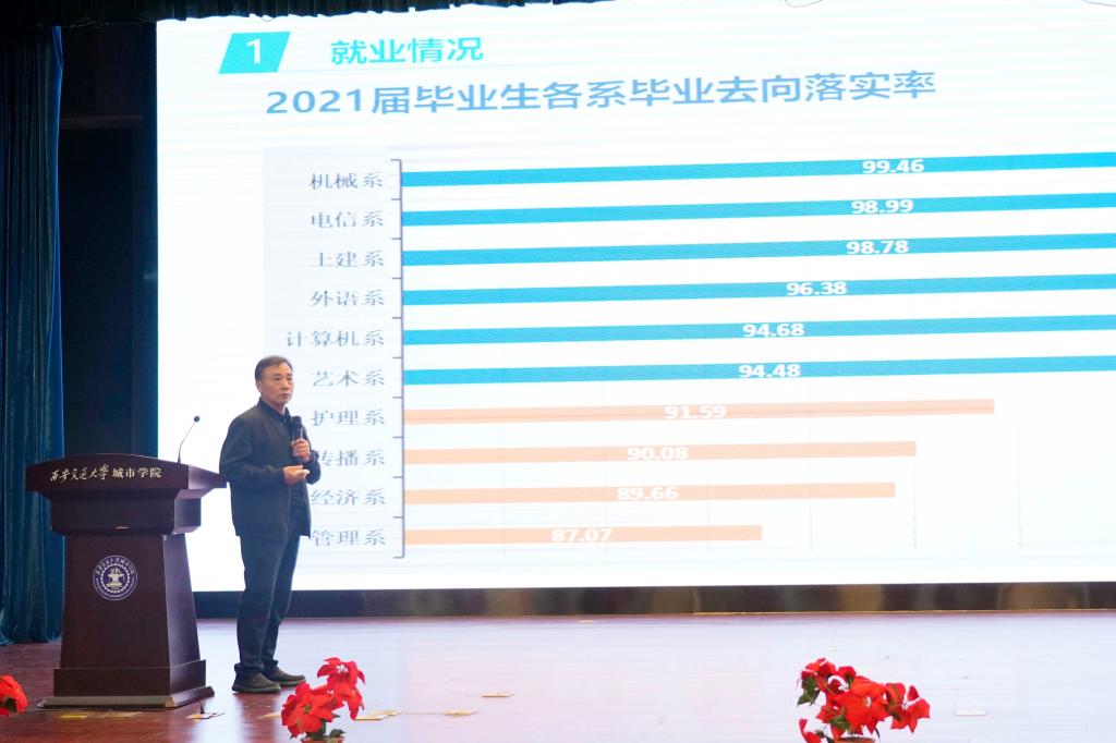 会上,学生中心张学堂主任从目前2021届毕业生整体毕业去向落实情况、2021届毕业生就业工作主要举措、2021届毕业生就业工作特点、问题与对策等四个方面汇报了我院2021届毕业生就业工作情况,并就2022届毕业生就业工作进行了安排,就2022届毕业生就业工作要求与目标、2022届毕业生就业工作激励措施等进行了说明。他指出要夯实毕业生就业工作责任,提前谋划毕业生就业工作,提早做好毕业生就业动员,完善毕业生就业指导服务,全力推动我院2022届毕业生就业工作再上新台阶。