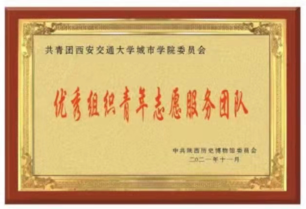 11月27日上午,陕西历史博物馆第二十届志愿者注册签约仪式在陕历博多功能厅成功举行。我院团委被授予“优秀组织青年志愿服务团队”荣誉称号(全省仅6个),贺籽珺同学获得2021年度“陕历博十佳志愿者”荣誉称号(全省仅10人)。除此之外,我校还有苗泽志、罗鹏飞等11名陕历博志愿讲解队的同学分别获得获得了陕历博最具奉献志愿者、最具魅力志愿者、最具正能量志愿者、最具潜力志愿者、优秀志愿者表彰。