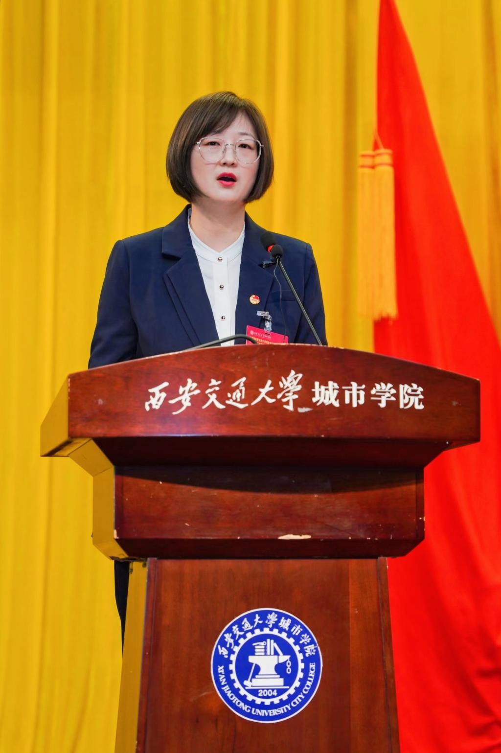 学院团委书记茹静作题为《立足新起点,奋进新时代,团结带领广大青年为国内一流应用型大学建设贡献青春力量》的共青团工作报告。报告全面总结了我校自上一届团代会以来共青团工作的主要成绩与工作经验,提出了新时代我校共青团工作的思考和下一步我院共青团工作的新蓝图。
