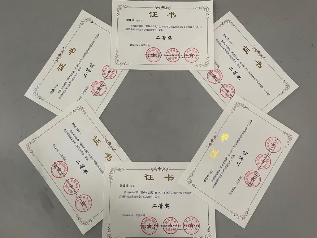 11月6日至7日,由中国国际商会商业行业商会和中国国际贸易促进委员会商业行业委员会共同主办,中国国际商会商业行业商会和北京云泽科技有限公司承办的2021年全国高校商业精英挑战赛“云泽杯”营销模拟决策竞赛全国总决赛圆满结束,我院管理系张琳歌、樊佳欣、李慧玲、李宜芸、顾缘、刘萍组成的“爱拼才会赢”团队与全国115所高校的500多支队伍同台竞技,最终获得“全国二等奖”,惠春丽老师获得“优秀指导老师奖”。
