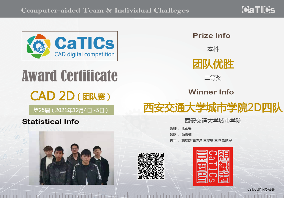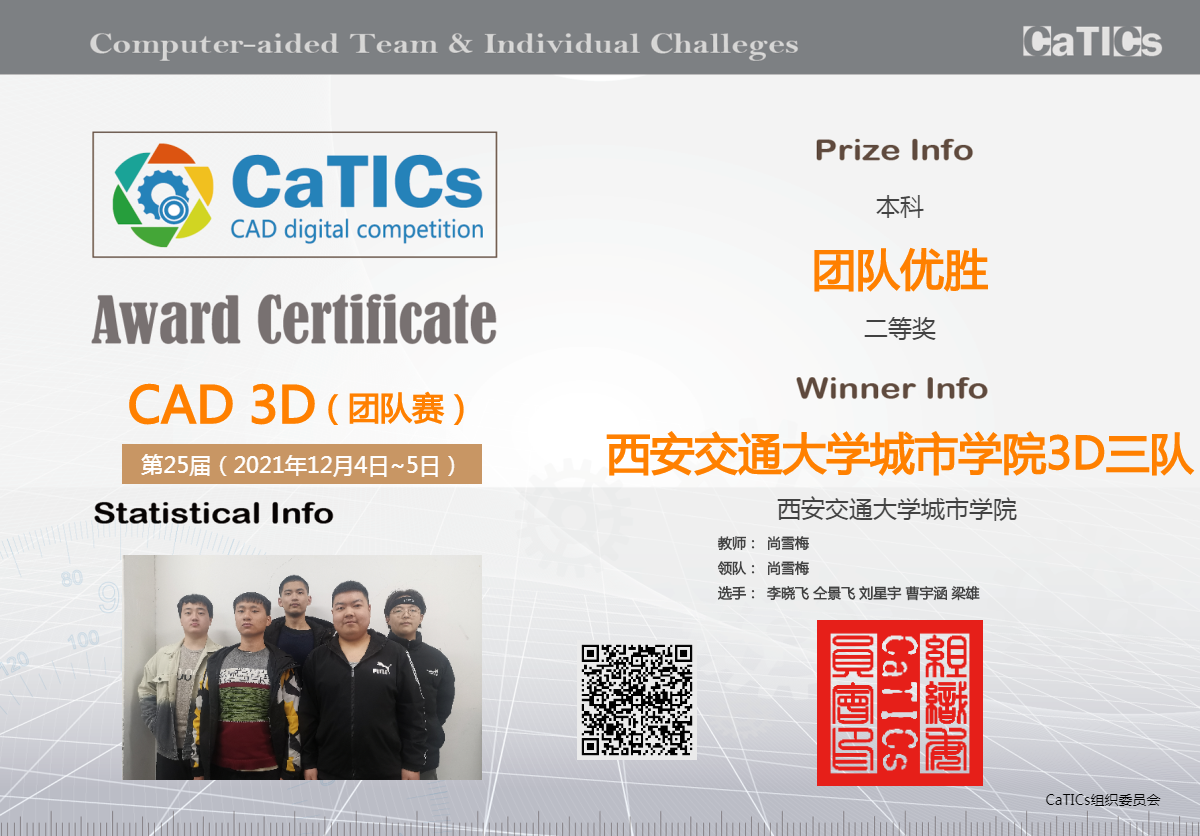 据悉,CaTICs(Computer-aided Team & Individual Challenges)是CAD领域的全数字化竞赛,该竞赛全称是全国大学生团队技能赛,由北京菁华锐航科技有限公司承办,是基于网络的、团队之间和选手个人间对抗的、全数字化的广域网系统比赛平台。本次比赛共吸引了全国100多所高校参加。