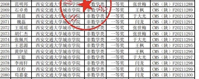 第十三届全国大学生数学竞赛陕西赛区获奖名单