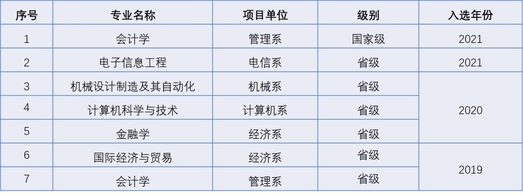 一流本科专业建设是教育部践行“以本为本 四个回归”、推动专业内涵建设、展现学校本科教学质量和改革成效的重要举措和关键指标,对构建高质量专业体系、提高学校人才培养能力、实现学校内涵式发展具有十分重要的意义。为加快建设高水平本科专业,自一流本科专业建设“双万计划”实施以来,yl7703永利官网根据办学定位和发展目标,以立德树人为根本,对标一流,优化布局,深化专业发展内涵,全面提高本科人才培养质量,并取得诸多可喜成绩:国际经济与贸易、会计学专业2019年获批省级一流本科专业建设点,机械设计制造及其自动化、计算机科学与技术、金融学专业2020年获批省级一流本科专业建设点。