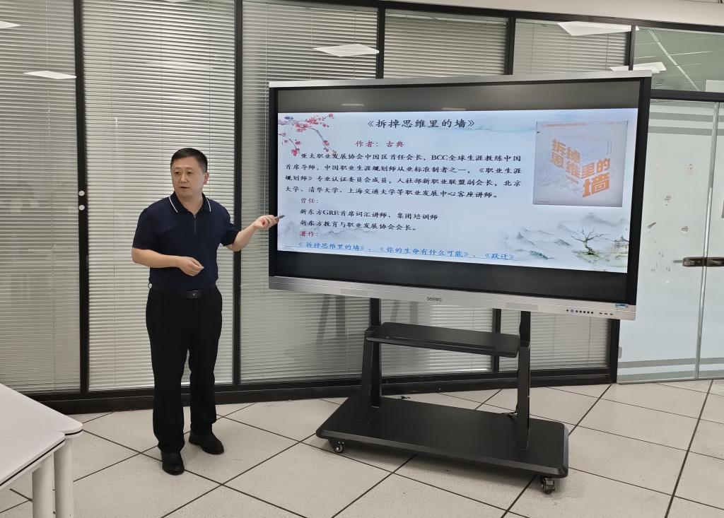 学生服务中心副主任辛红伟讲解了《拆掉思维里的墙》的主要内容。本书提出“思维里的墙”是指人们习以为常的思维方式,是受限制的心智模式。辛老师重点介绍了“有意思比有意义更重要”“心智模式决定命运”“幸福是一种转换力”等章节内容,指出我们在教育学生时讲故事比讲道理更有用,要找有趣的事情和方法去激发学生的内驱力,引导学生不要被别人的情绪所掌控、抛弃“我要比你更好地执念”,建立正向的心智模式,从而实现自我成长。