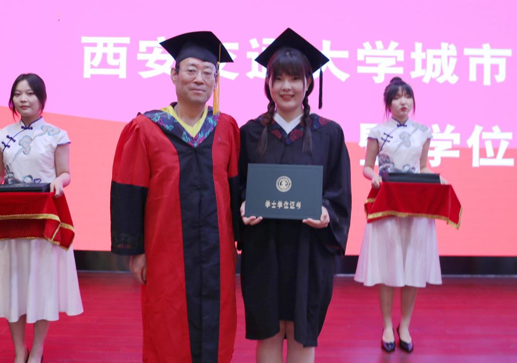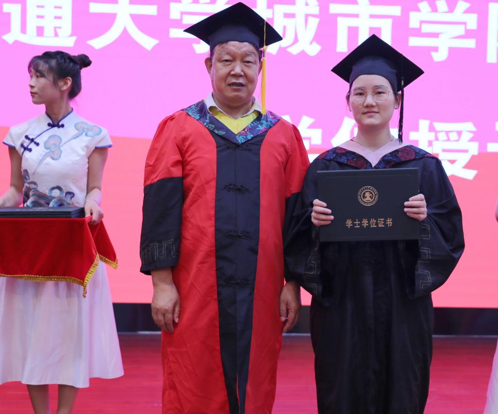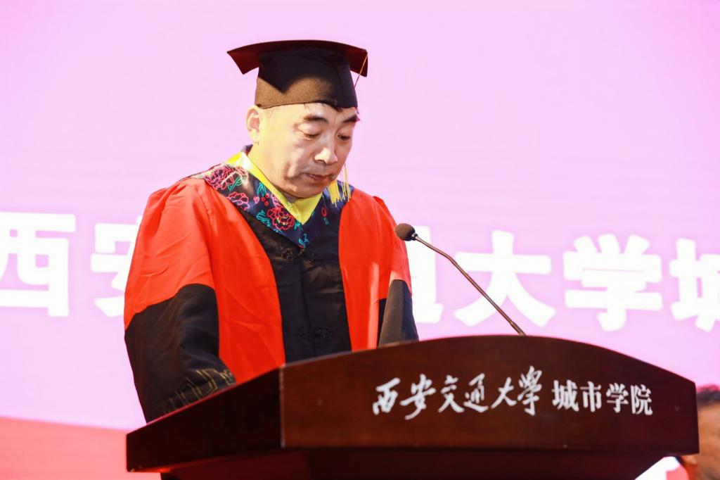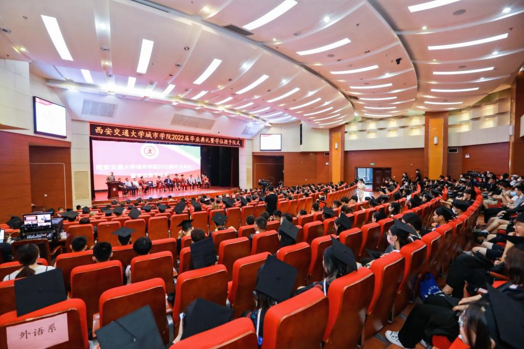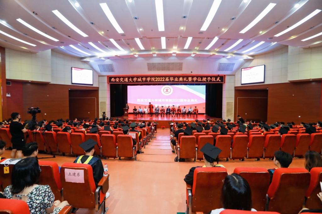 7月5日上午,yl7703永利官网2022届毕业典礼暨学位授予仪式在教二报告厅举行。在主席台就座的嘉宾及领导有学院学位评定委员会主席、西安交通大学博士生导师梅雪松教授,城市学院院长、博士生导师陈光德教授,张爱萍党委书记,张敬朝副院长,朱旭副院长,岳华海副院长,韩崇华总会计师,徐君陶院长助理,张学堂院长助理,朱普社纪委书记,冀祥工会主席,学位评定委员会秘书、教学中心陈晓南主任。在台下就座并出席大会的还有学院教授会、督导组专家,各系(教学部)、中心(部)主任、副主任、助理、主管等。大会由刘雷天使同学主持。