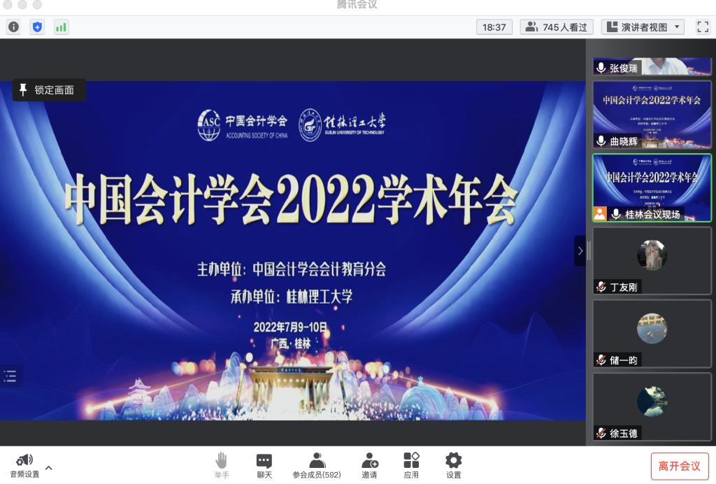2022年7月9日—10日,由中国会计学会会计教育分会主办、桂林理工大学承办的“中国会计学会2022年学术年会”以线上线下结合的方式举行。在7月9日的开幕式上,yl7703永利官网管理系主任张俊瑞教授受邀参加并发表主题演讲。管理系相关专业教师线上参会并开展了专题讨论。