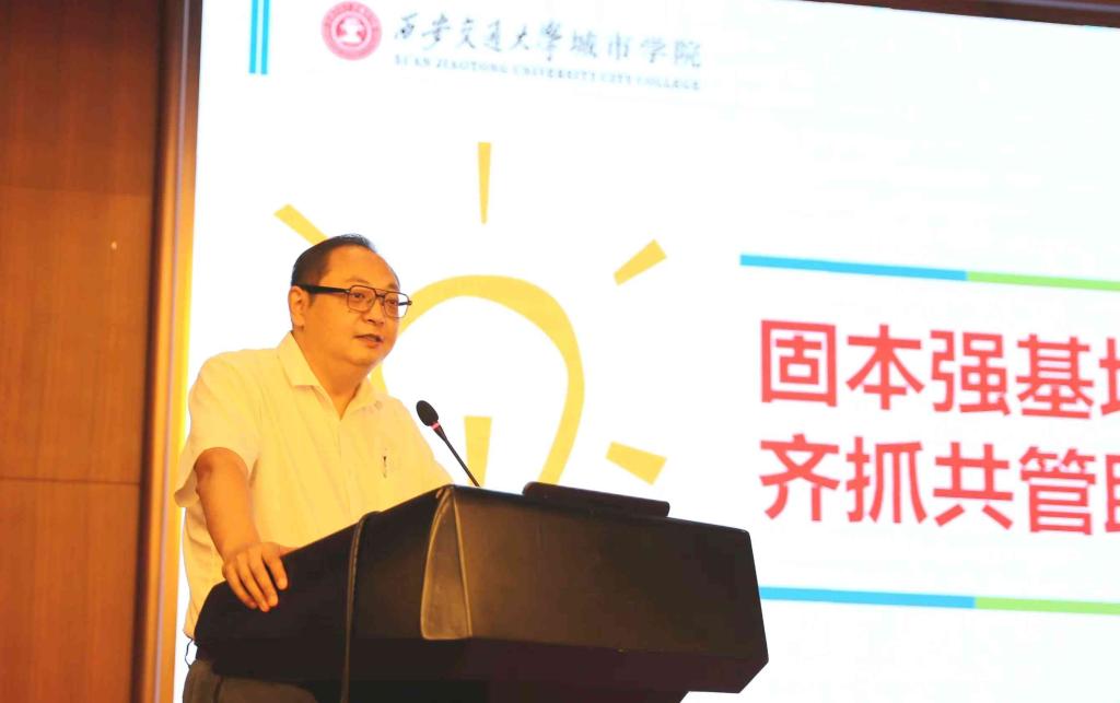 主题报告会由张敬朝副院长主持。陈光德院长作了《加强优良校风建设 促进学院健康发展》的主题报告,指出了学院面临的形势与任务、机遇与挑战、优势与短板、思路与措施。强调要做好招生工作,提高招生质量,保障正常教育教学秩序和基本教育教学质量,加快完善基本办学条件,稳定和加强教师队伍建设,传承交大优良的办学传统,形成自身发展特色。同时,加强中青年教师骨干人才及学科带头人的引进与培养,促进产教融合的实质性开展,加强应用性科研平台建设,注重教师团队建设。加强优良校风建设,树立正确办学理念,以育人为宗旨,形成尊师重教的良好氛围,实施人才强校、特色兴校,教授治学、职员治事、学生自治的办学模式。优教风、正学风、转作风,进一步加强工作作风建设,严肃工作纪律、树立良好形象,以高度负责的态度,爱岗敬业,率先垂范,言传身教,以良好的思想、道德、品质和人格给学生潜移默化的影响。通过不断地学习、研究和培训,进一步提升教学水平和业务能力。管理工作要以师生利益为出发点,竭力为师生做好服务,让师生满意。