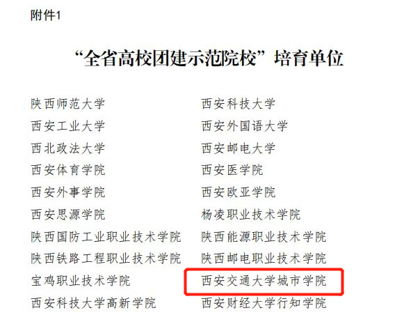 近日,共青团陕西省委和陕西省委教育工委联合印发了《关于确认全省学校团建示范单位培育资格的通知》。我院入选“全省高校团建示范院校”培育单位,传播系团工委、机械工程系团工委入选“全省高校团建标杆院系”培育单位名单;国旗护卫队团支部,陕西历史博物馆志愿讲解队团支部,艺术系书法2001团支部入选“全省高校团建样板支部”培育单位名单。