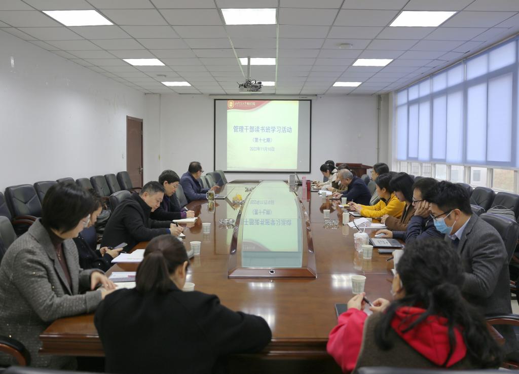 11月10日上午,西安交大城市学院管理干部读书班举办了第十七期学习活动,党政服务中心、学生服务中心、继续教育与培训中心、思政教学部等管理干部参加了本次学习。学习活动由学院党委书记张爱萍主持。