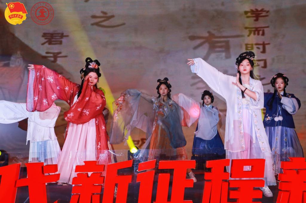 一首气势磅礴的歌曲《美丽中国》为歌会拉开序幕。一首首各具特色、脍炙人口的歌曲《星辰大海》《小城夏天》《海阔天空》,诉说了城院学子初入校园的欣喜和对未来校园生活的期望。其中《华夏》《向阳盛开》《礼仪之邦》等国风表演再出圈,更是将中华优秀传统文化完美演绎。伴随着《城院欢迎你》《只此青绿千里江山图》《第一天》《Dance along》等舞曲青春的节拍和脍炙人口的说唱,现场瞬间变成歌舞的海洋,优美的舞姿、青春的笑脸,刻画出了城院生活最美的样子。