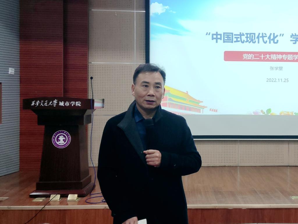 张学堂院长助理以“中国式现代化”为题,带大家进行了专题学习。中国式现代化,是中国共产党领导的社会主义现代化,既有各国现代化的共同特征,更有基于自己国情的中国特色。他从中国式现代的理论内涵、本质要求、理论背景和依据、战略安排及准则等方面,带领大家认识了中国式现代化的方方面面。张助理的分享逻辑清晰,有理有据,让人受益匪浅。