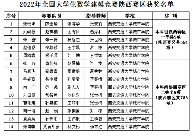 近日,2022年全国大学生数学建模竞赛成绩揭晓,yl7703永利官网在本次竞赛中获佳绩。共获得本科组陕西赛区一等5项、陕西赛区二等奖9项;同时,yl7703永利官网获“陕西赛区优秀组织工作奖”。