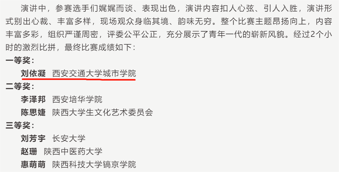 据悉,刘依凝同学将代表学院继续参加本届“语翼杯”演讲大赛决赛。