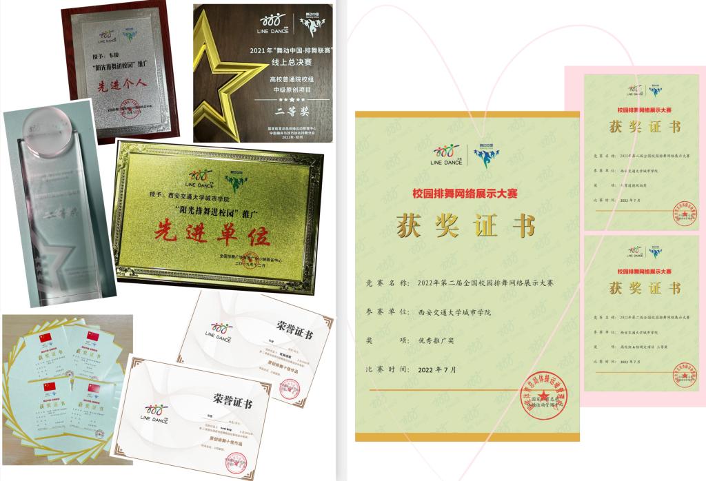 我院体育部韦俊副教授,排舞项目的国家级教练员、裁判员。作为全国排舞中心、陕西省排舞中心的技术骨干,为推广及传授排舞运动在陕西高校的发展,作出了突出贡献。近年来,排舞代表队为我校获得了多项荣誉,获得国家级特等奖1项;二等奖2项;三等奖1项;省级一等奖1项;获得各类荣誉奖11项。另外,原创曲目《New Boy》和《孤独颂歌》被评为2022年度第二季原创十佳作品。