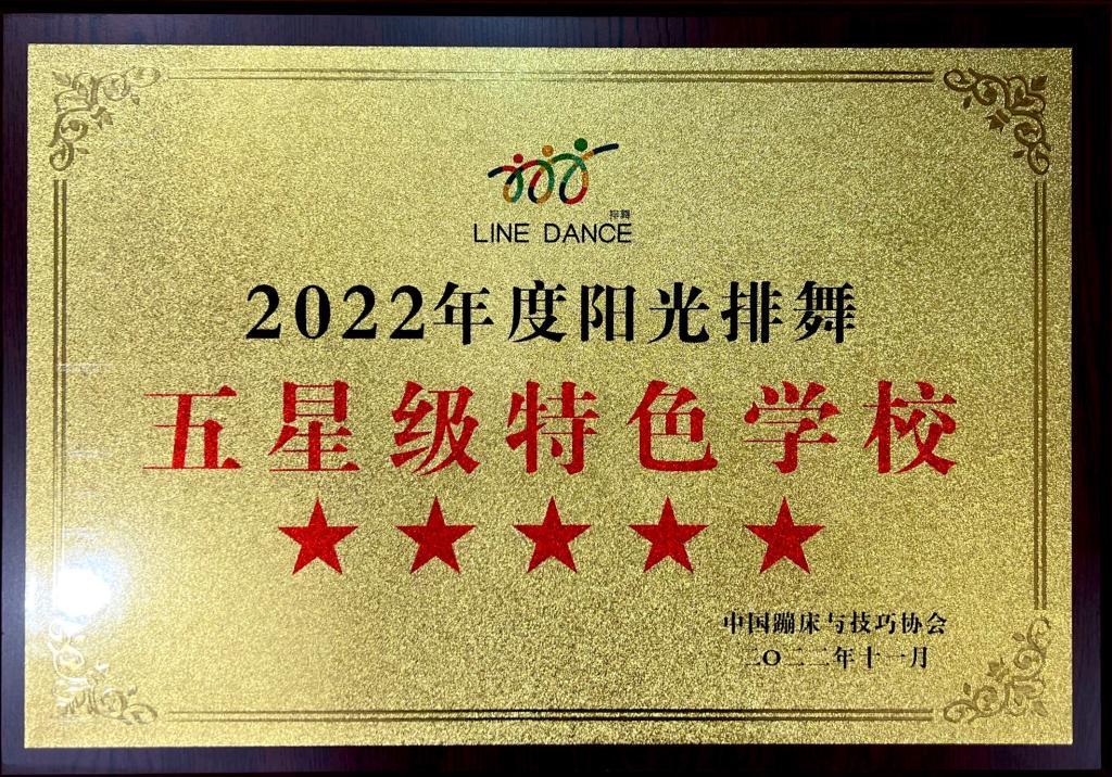 2022年11月底,由国家体育总局体操运动管理中心,中国蹦床与技巧协会主办,中国蹦床与技巧协会排舞分会承办的“阳光排舞进校园”特色学校评选活动中,我校荣获“阳光排舞进校园五星级特色学校”荣誉称号,荣登国家体育总局官方网站。