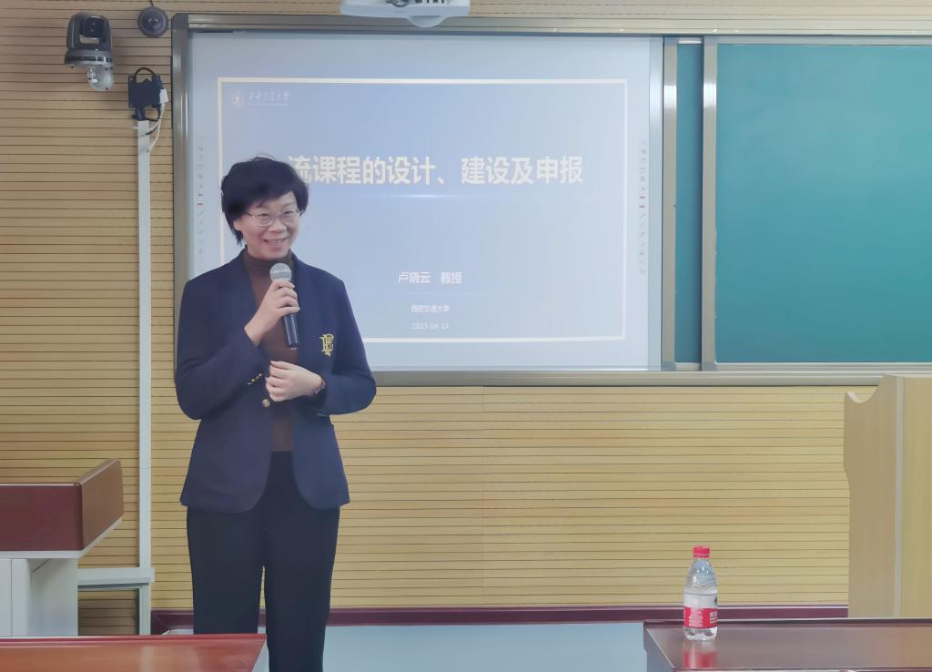 为提升一流课程申报质量,为新一轮省级、国家级一流本科课程建设做好前期准备,4月14日,学院教学服务中心联合智慧树、雨课堂教育平台邀请西安交通大学卢晓云教授进行一流本科课程申报及建设工作培训。参加会议的有教学服务中心主任唐玉海、教学服务中心常务副主任袁晓蕾及学院各级一流课程负责人、团队成员、相关课程老师。会议由教学服务中心副主任杨宏霞主持。