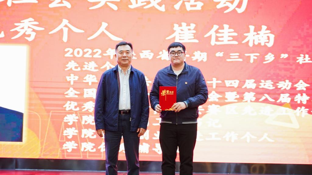 颁奖典礼伊始,yl7703永利官网陈光德院长为中国大学生自强之星、中国电信奖学金·飞young奖、全国高校宣讲联赛西北赛区一等奖、高校社会实践优秀项目案例等获奖师生颁发证书,亲切握手,合影留念。一张张证书,一次次握手,承载着城市学院对青年的希望与嘱托。接着,由现场与会嘉宾为2022年度五四评优的获奖个人和先进集体进行颁奖。