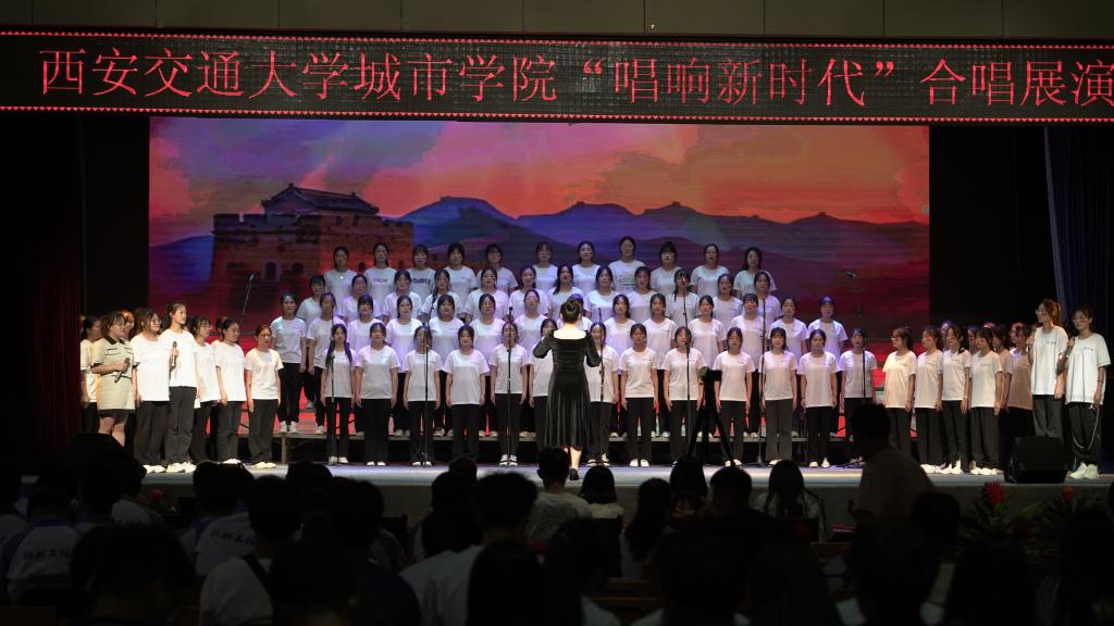 比赛现场,八支由各系师生组成的百人合唱队,纷纷以饱满的精神状态、高昂的士气,迎接这场比赛,他们唱出了学史力行、争先创优的精神风貌,唱响了红心向党、永远跟党走的坚定信仰,充分展现了城院学子的朝气蓬勃、积极向上的昂扬斗志。《我和我的祖国》《走向复兴》《在灿烂阳光下》《篇章》一首首经典脍炙人口的红歌,一曲曲高亢动人的歌声,抒发了红心向党的真挚情感,充分展示了师生“厚德 博学”的精神力量,与时代同发展、共奋进的坚定信念。