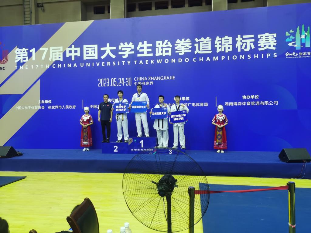 5月24至30日,在湖南张家界举行的“第17届中国大学生跆拳道锦标赛”中,学院跆拳道队选手外语系刘柏涵同学先后战胜苏州科技大学、南方科技大学等获得季军。本次比赛由中国大学生体育协会、张家界市人民政府主办,共有来自全国185所高校,1500余名教练员、运动员参赛。