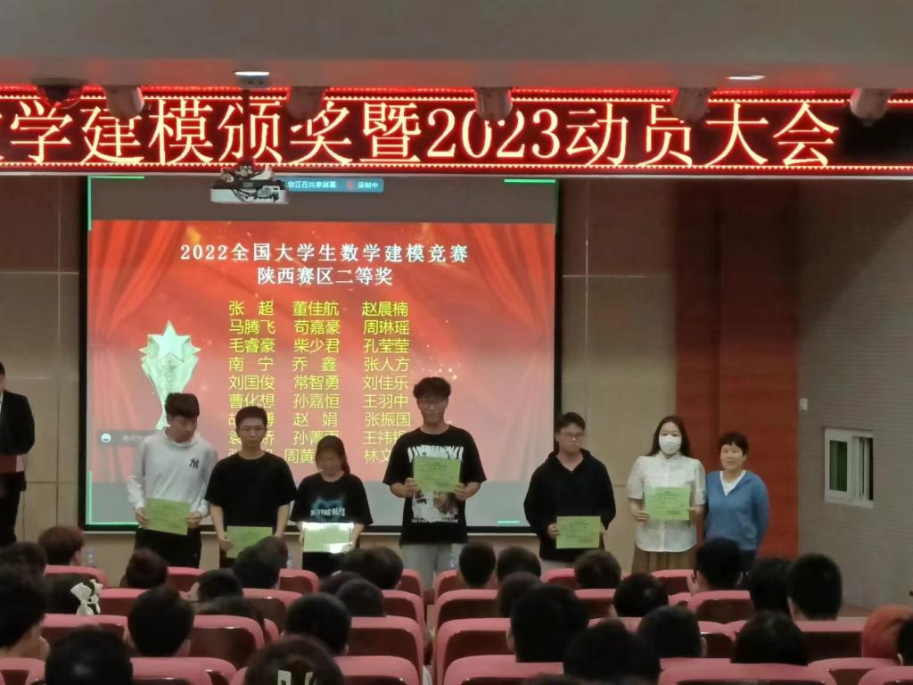 会议伊始,主持人宣读2022全国大学生数学建模竞赛及2023美国大学生数学建模竞赛获奖学生名单,与会领导及教师分别为获奖学生颁发获奖证书并合影留念。2022年全国大学生数学建模竞赛我院共获省一等奖5项、省二等奖9项,同时,学院荣获优秀组织工作奖;2023美国大学生数学建模竞赛获F(特等提名)奖1项、H(二等奖)奖4项、S(三等奖)奖28项。随后,优秀获奖队伍代表张秦阳同学分享了自己的参赛历程与获奖经验。