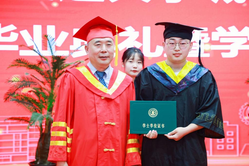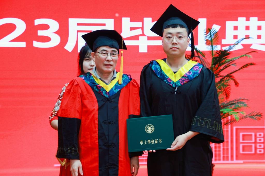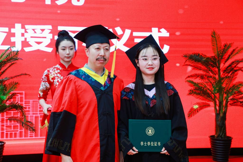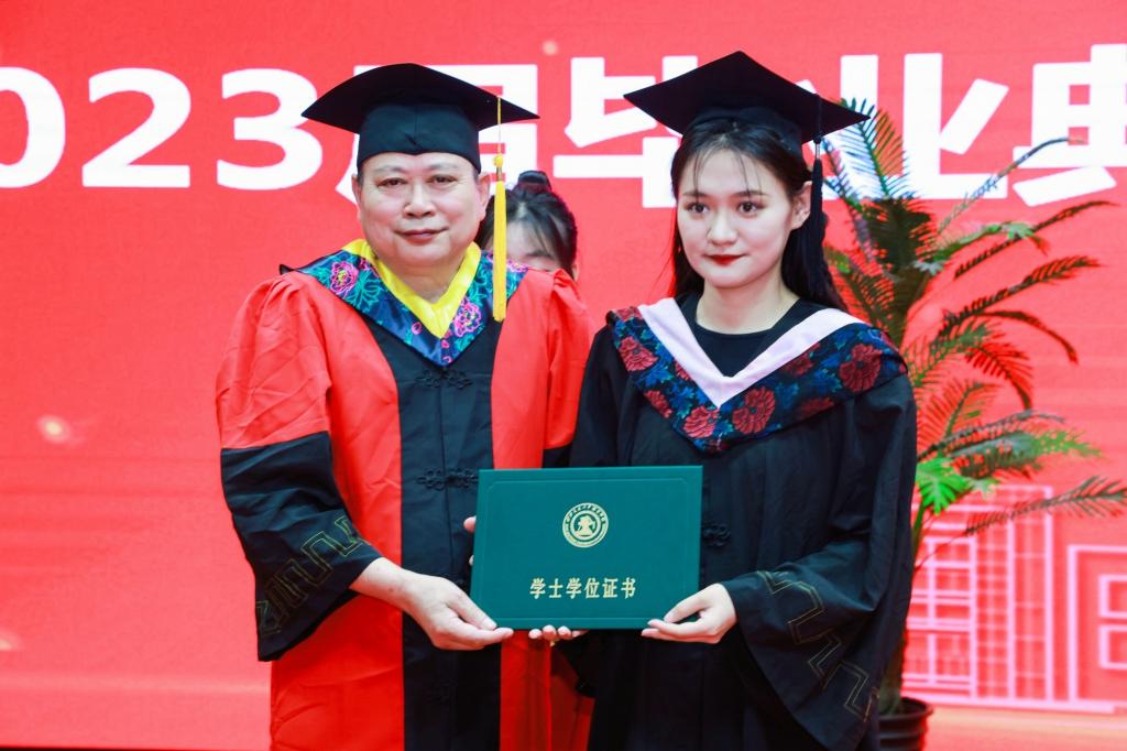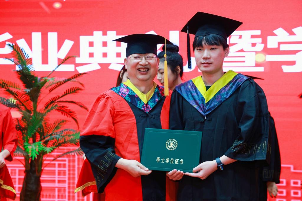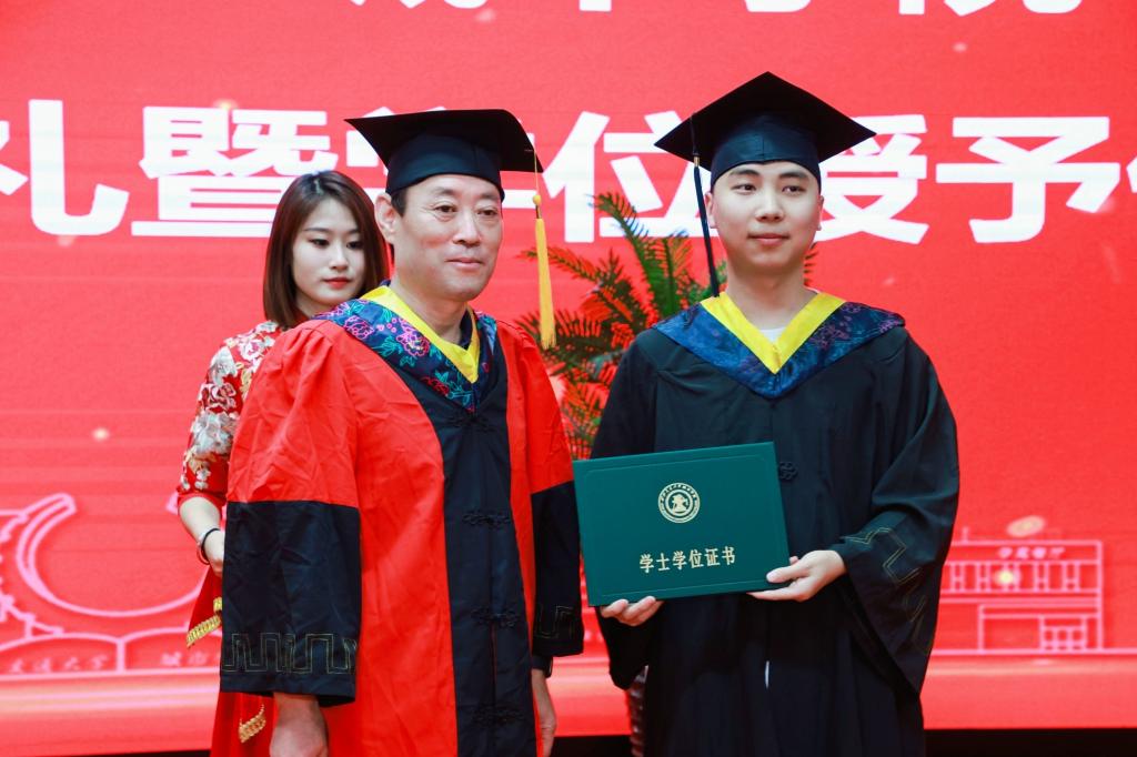 在主席台就座的领导为毕业生颁授了学位证书并合影留念。yl7703永利官网2023届毕业典礼暨学位授予仪式圆满结束。