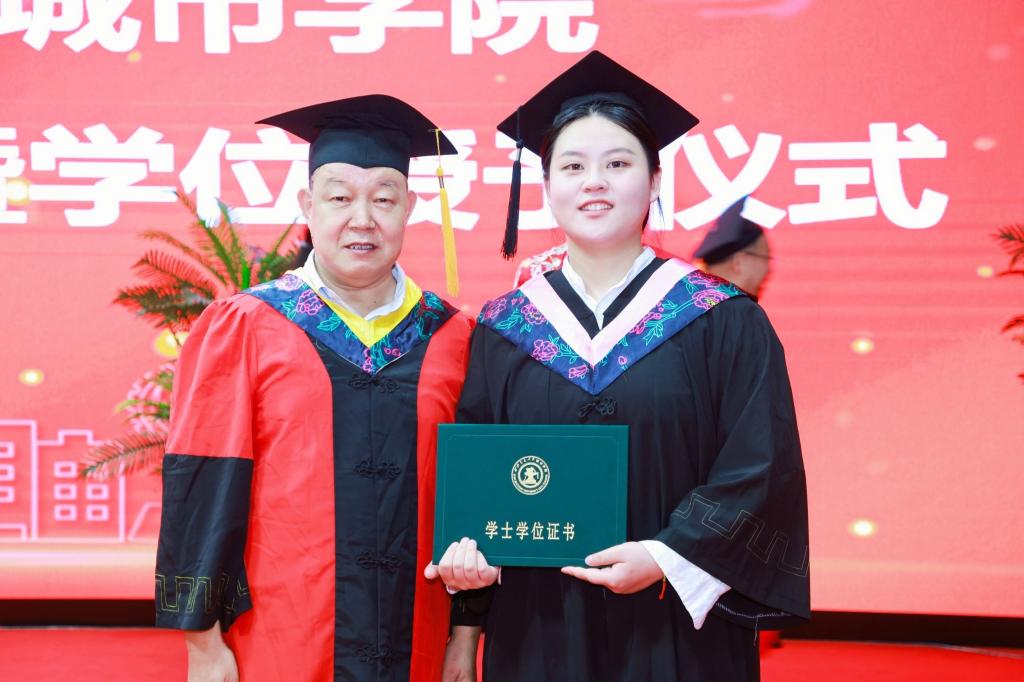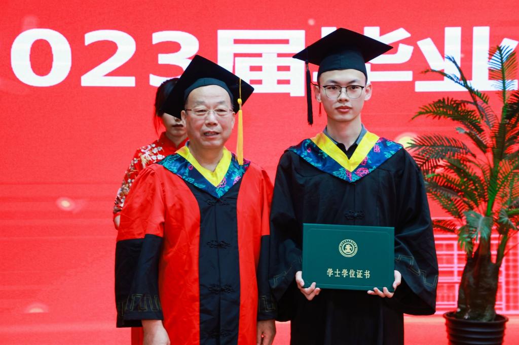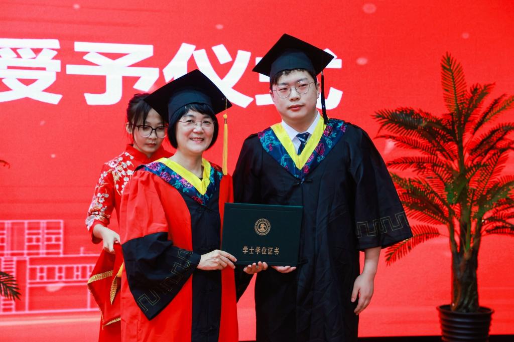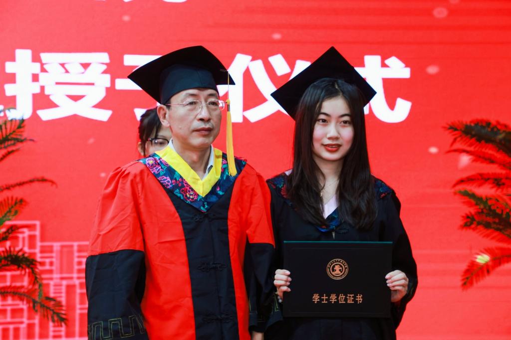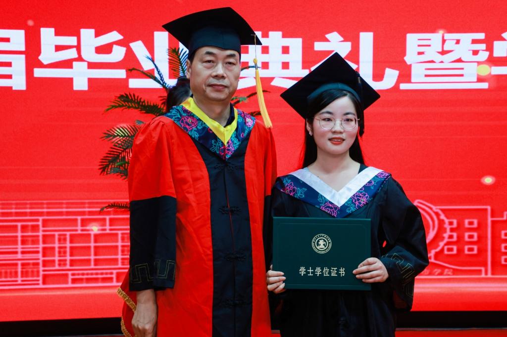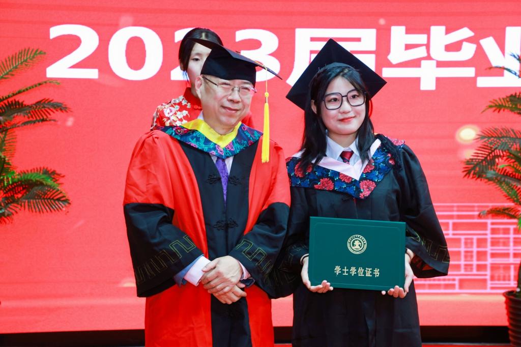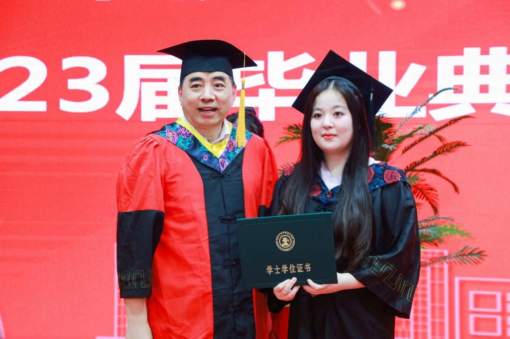 在主席台就座的领导为毕业生颁授了学位证书并合影留念。yl7703永利官网2023届毕业典礼暨学位授予仪式圆满结束。