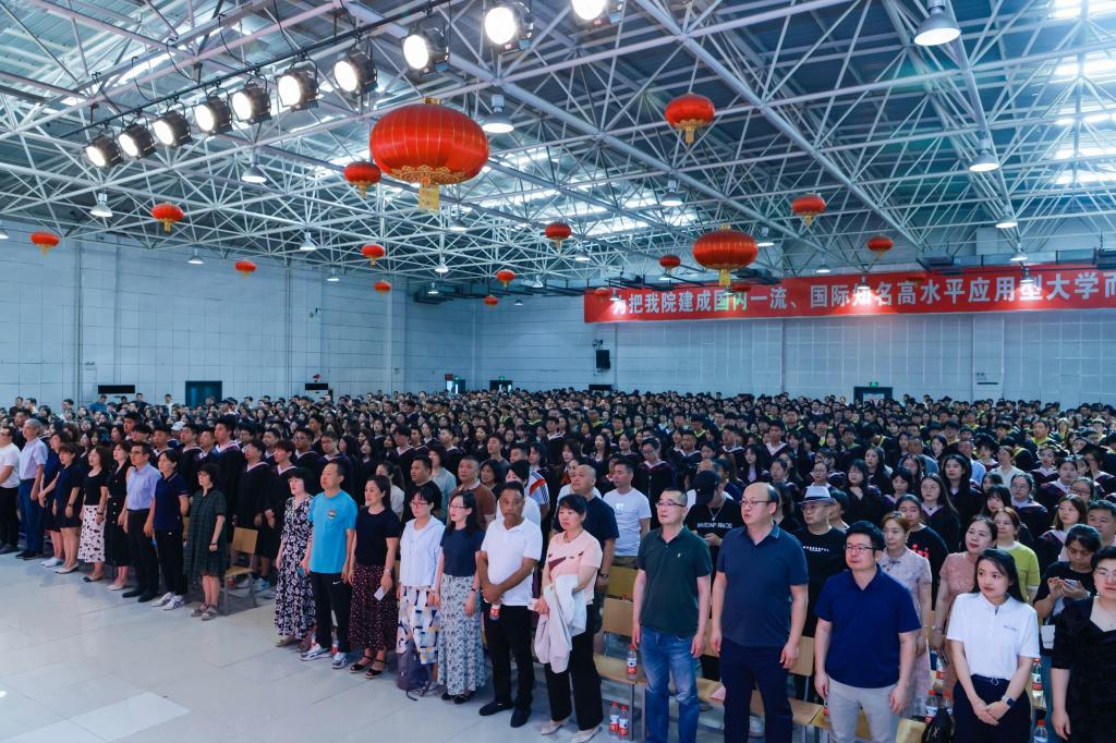 在庄严肃穆的国歌声中,大会正式开始。首先,朱旭副院长汇报2023届毕业生学业情况。朱旭副院长对顺利完成学业,获得本科学士学位的同学表示衷心的祝贺!希望大家继续努力,取得更大的进步!同时,朱旭副院长希望毕业生们以“担当”为帆,以“奋斗”为桨,勇敢追梦,勇敢前行。希望毕业生们胸怀祖国、放眼世界,做坚强快乐的追梦人,做健康勇敢的担当者。