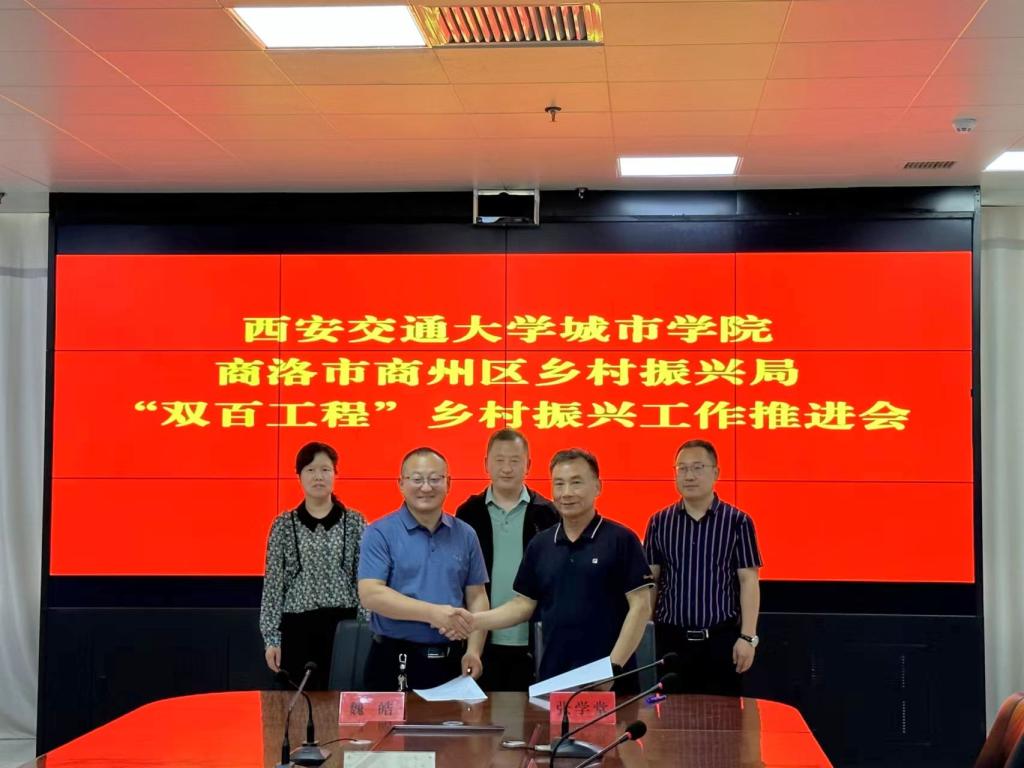 下午,双方在商州区乡村振兴局会议室举行了“双百工程”乡村振兴工作推进会。张学堂院长助理一行与区乡村振兴局副局长魏皓、科技和教育体育局乡村振兴办公室主任林高彦、乡村振兴局社会扶贫股股长任晓婷等人员在推进会上就教育帮扶、文化帮扶、产学研合作、志愿服务、相关培训、消费帮扶等方面进行了深入交流。最终双方签订了《yl7703永利官网助力商州区乡村振兴结对帮扶协议书》。
