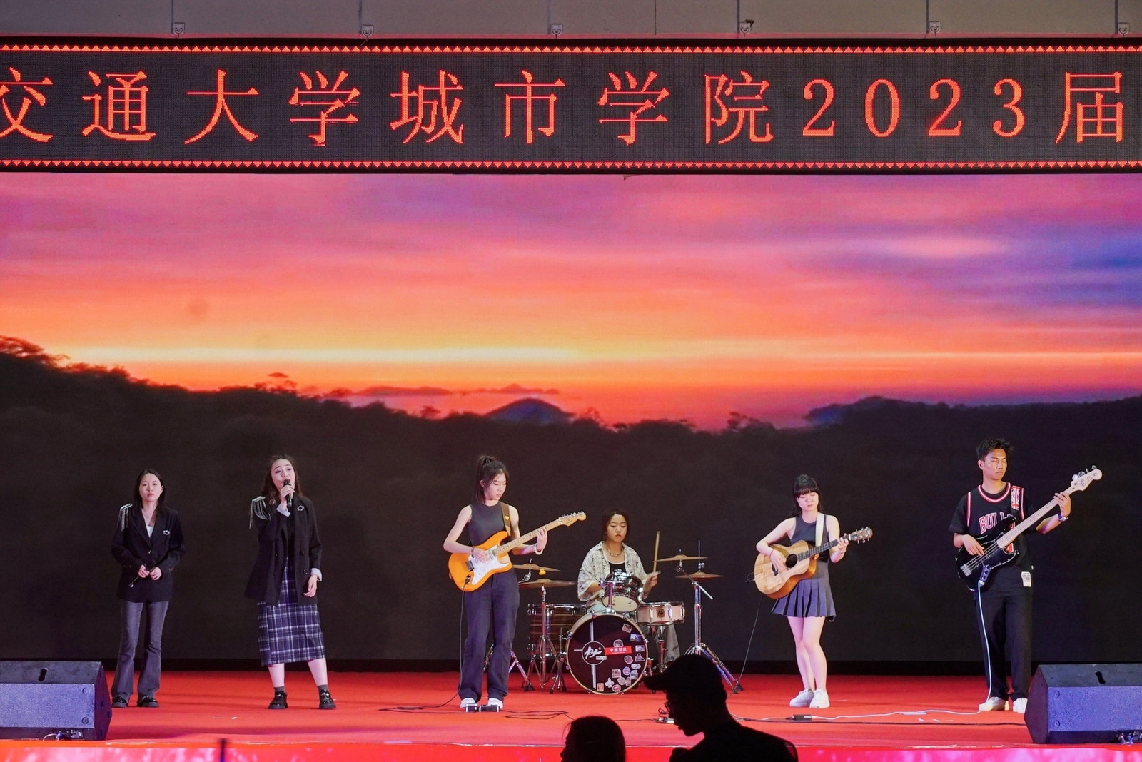 “向着光的方向走去,让我们追逐光,成为光,用尽一切去奔向我们憧憬的向往的美好的未来,用尽一切去追逐生命之光。”一首由DM音乐社和吉他社带来的一首充满力量的歌曲《最美的太阳》,高亢的歌声引起毕业生阵阵共鸣,晚会现场灯光绚丽、节奏欢快、气氛热烈。五名毕业生带来的精彩热舞《Queen》点燃了全场的热情,变化纷繁的背景下,动感十足的舞蹈,尤其是毕业生陈星全的舞姿妩媚中带着可爱让台下的观众尖叫不断。话剧社同学带来的影子秀《青春的日子》,军训、早八、食堂、教室、宿舍一幕幕仿佛发生在昨天,幕后同学生动搞笑的表演,让观众一会感伤一会笑。伴着悠扬的歌曲《夏天的风》我们进入晚会的最后一个篇章。机械系刘越同学和乐队演唱的《不再犹豫》是我们的回忆,更是城院学子的青春回忆,拼搏的意志捍卫青春的誓言唱出同学们的心声。传播系赵悦老师带领合唱团同学们为大家献上了一首《老师我想你了》,悦耳的民族唱腔伴着一张张毕业生与老师们的合影,不禁让大家泪眼婆娑,多幸运有您参与我的青春,一句句饱含感谢恩师的歌词,道出了那一声真挚的“老师,您辛苦了!”毕业生朗诵的《你的声音》将晚会推向尾声,用最充沛的情感表达着对西交大城院的赞美和感激之情。现场除了发来告白语音的毕业生们,我们还邀请到了各系的毕业生代表,跟随追光刘洪江同学的歌曲《送别》缓缓从观众席走出来,12名毕业生用自己的话语告白着自己的大学四年,四年间老师和亲友的关心,帮助;四年间自己的成长与蜕变;四年间自己的收获与期待;真情实感让台上台下观众早已潸然泪下。晚会最后随着毕业生高玉龙同学的一首离别歌曲《凤凰花开的路口》,大家整齐深情的歌声饱含了浓厚的情感,给本次晚会画上了一个完美的句号。