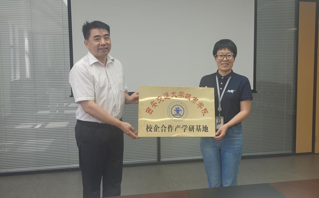 座谈会之后,由学院朱旭副院长向吉利汽车驻西安基地梁娟总监授予了校企合作产学研实习基地的牌匾。吉利集团作为世界500强、国内汽车制造知名企业,一直致力于与我院推进产学研合作,为共同培养应用型人才作出了积极贡献。为此,yl7703永利官网授予吉利集团“校企合作产学研基地”荣誉称号。