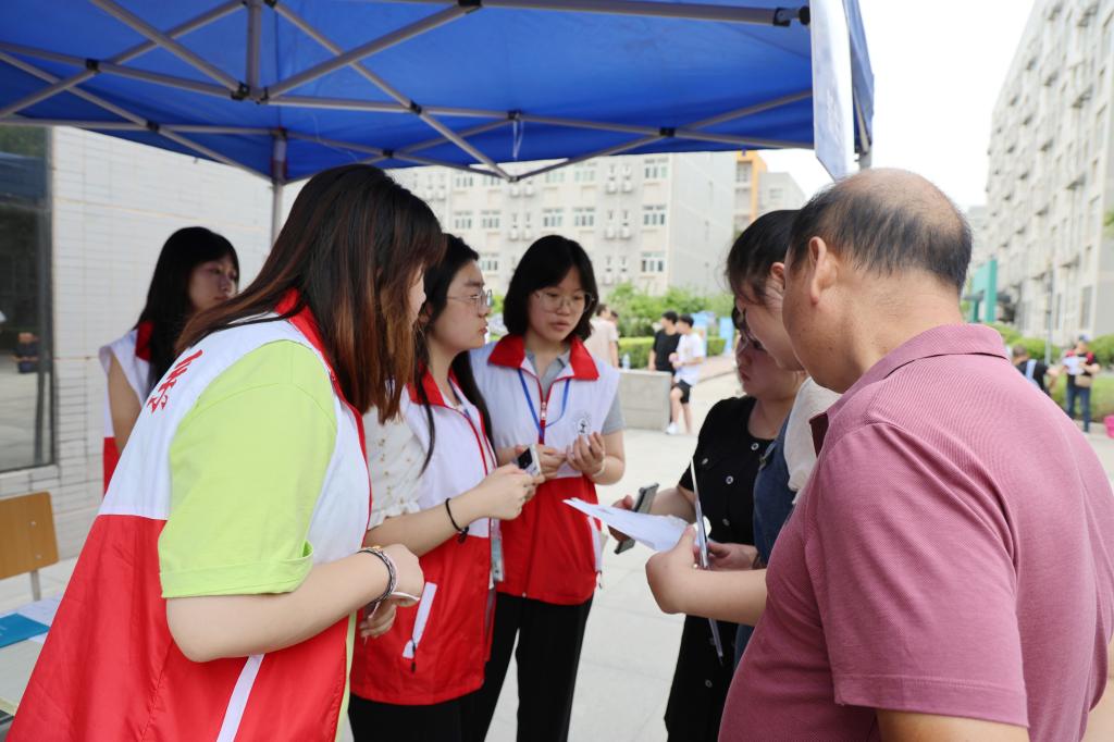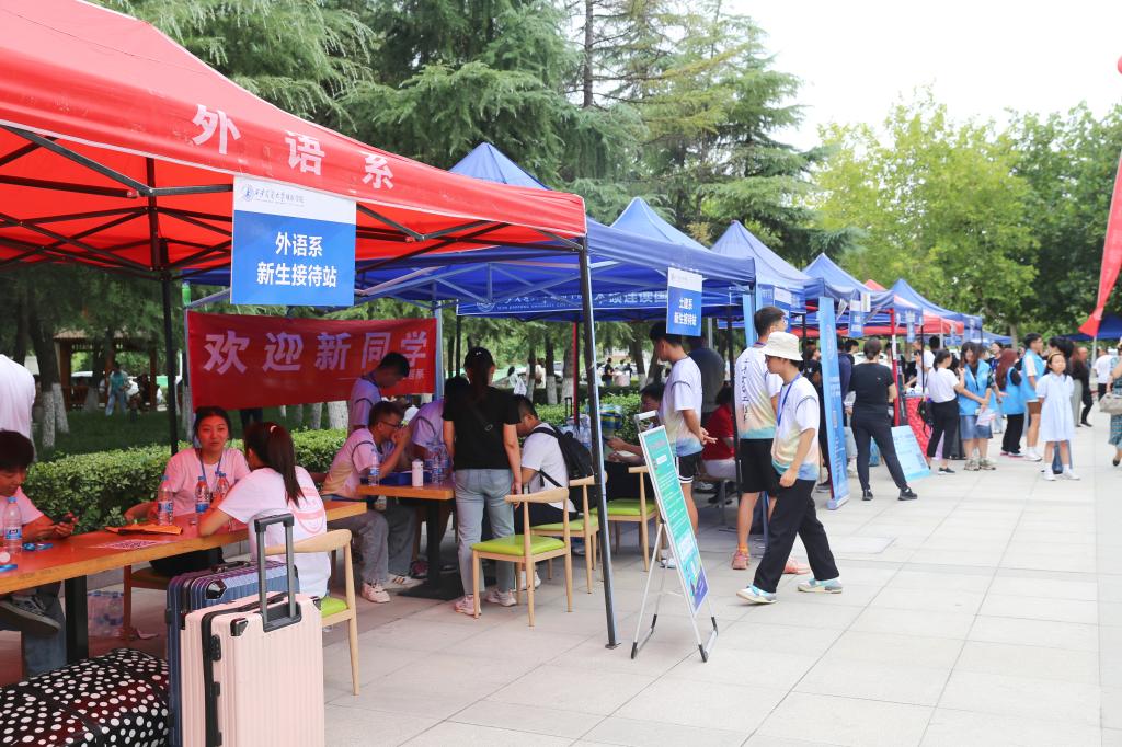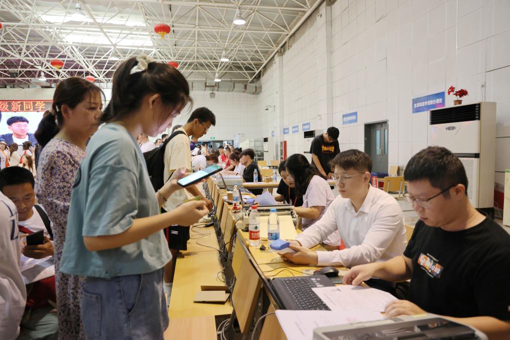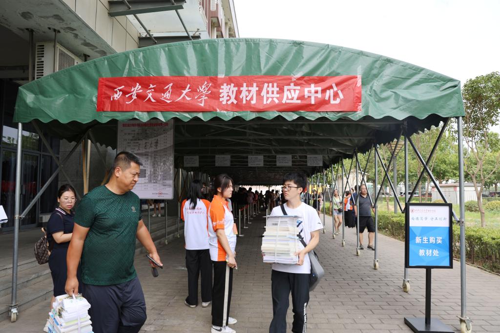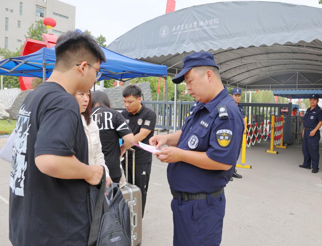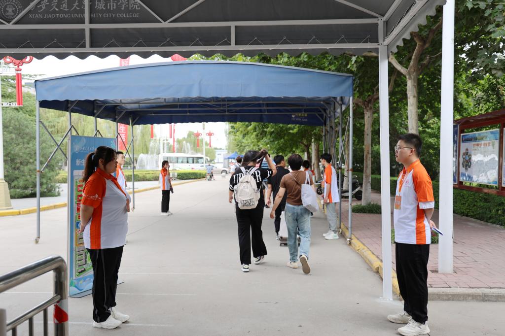 在迎新报到现场,报到工作紧凑有序,流程咨询、资格审核、学费缴纳、助学贷款办理、户籍迁转、注册手续等系列流程井然有序。工作人员和志愿者们热情周到,为新生办理入学手续提供便捷、高效、人性化的服务。学院在报到大厅里设置了休息区,配备了饮水机,为新生和家长提供贴心的服务。各系在报到大厅楼下设置了新生接待点,为新生及家长提供咨询。学生志愿者们耐心地为新生和家长解答遇到的各项问题,为他们送去热情周到的帮助和关爱。为使新生和家长平安顺利来校,学院在西安火车站和西安北站安排专车往返接送。校医院、宿舍楼、军训物资发放、教材发放等地工作人员认真细致地为新生进行体检、宿舍办理、军训服装及教材等发放工作。校园内安保人员、物业人员等后勤工作人员尽职尽责,为校园保持良好的秩序和整洁的环境提供了保障。