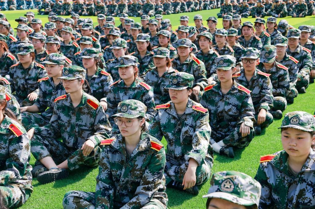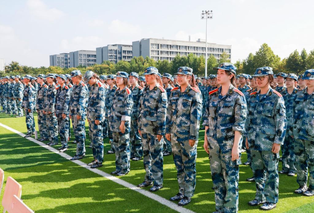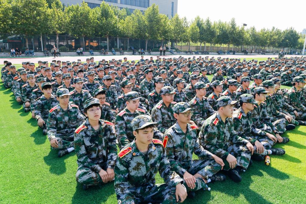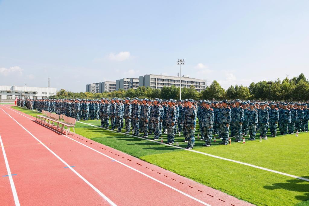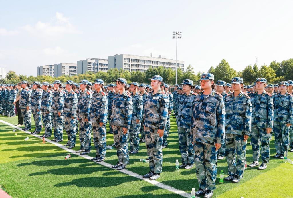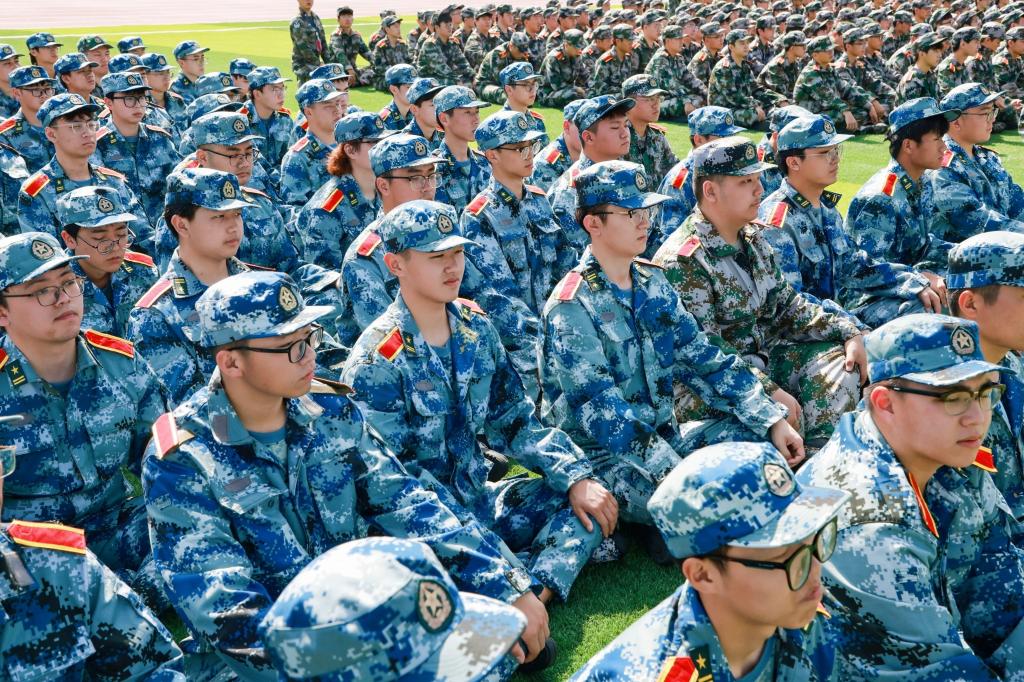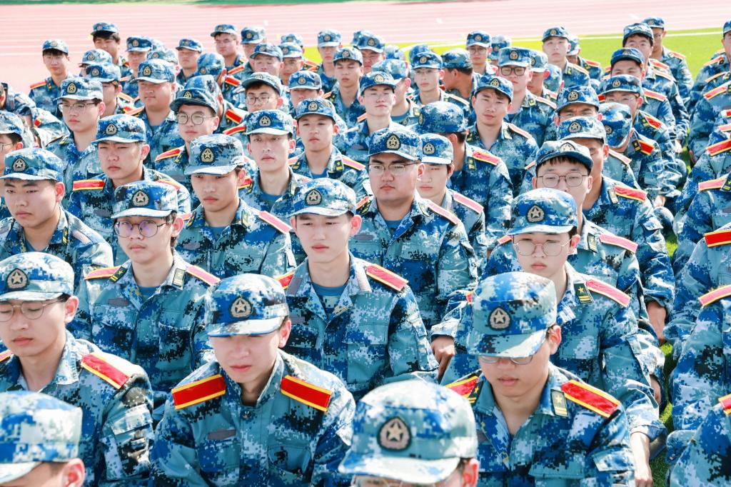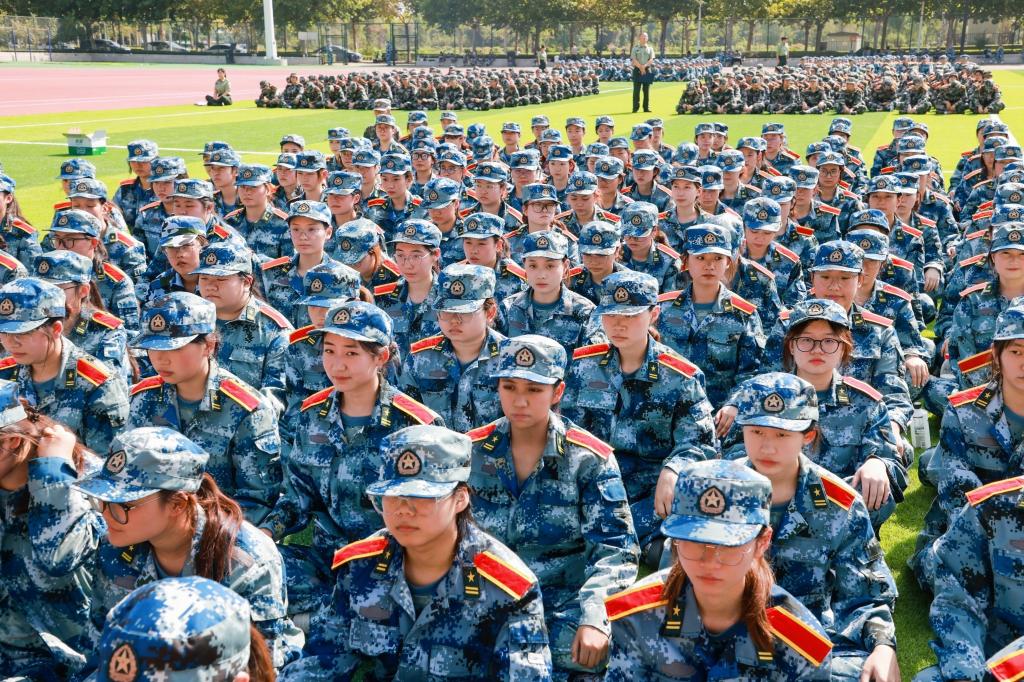 陈光德院长向军训团授旗并宣布2022、2023级学生军训正式开训。大会在雄壮的《中国人民解放军进行曲》歌声中落下帷幕。