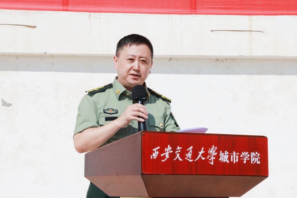 青春邂逅迷彩,热血铸就军魂,礼炮声响彻天际。伴随着国歌奏起,大会拉开了帷幕。朱旭副院长宣布学生军训团成立及营以上干部名单。学员代表贠萌昊同学代表全体军训学员进行发言。他坚定地说:“奋斗是青春最亮丽的底色,行动是青年最有效的磨砺。我们将牢牢把握军训这次机会,以饱满的热情和昂扬的斗志开启新学期新篇章。”教官代表王谦同志表示:“将以良好的军人形象、军人作风和军人姿态磨炼城院青年意志、坚强城院青年体魄,助力城院青年成长。”
