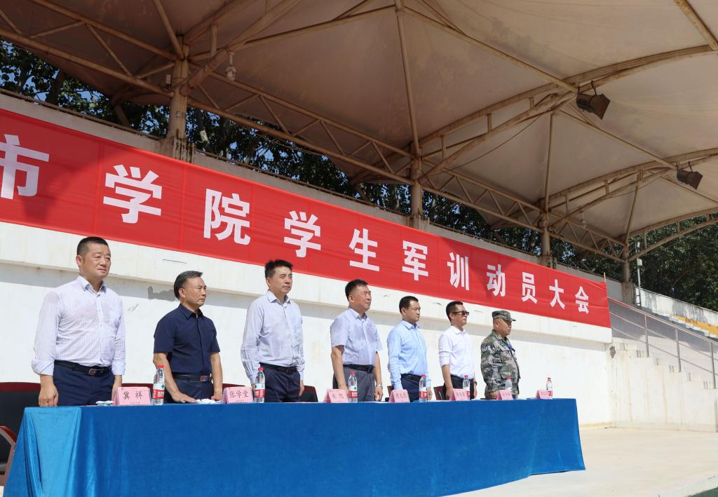 奋斗青春,戎装启程。8月21日上午,yl7703永利官网2022、2023级学生军训动员大会在学校运动场举行。yl7703永利官网院长陈光德、副院长陈书荣、副院长朱旭、副院长岳华海、院长助理张学堂、工会主席冀祥、军训团团长陈志军、政委辛红伟等全体军训团成员、承训教官及全校4000余名学员参加了军训动员大会。大会由军训团政委辛红伟主持。