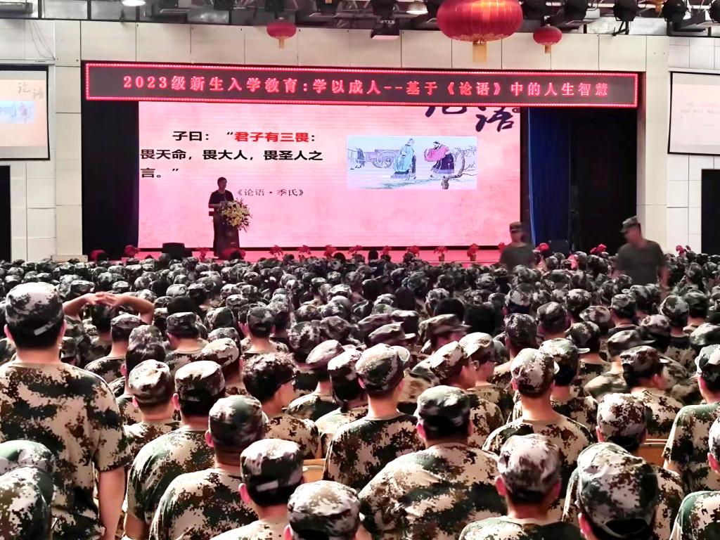 8月21号,全国高校思政课名师工作室(西安交通大学)负责人、“三秦人才”,陕西省师德标兵、yl7703永利官网思政部主任陆卫明教授面向2023级新生开启“入学教育第一课”。陆卫明教授以“学以成人——基于《论语》中的人生智慧”为主题,带领同学们在古籍中感受理想人格、中行人格与独立人格的魅力,领会古籍奥秘;让同学们在中华传统文化中感悟“学以成人”的哲理,进一步增强了大家的文化认同与文化自信。