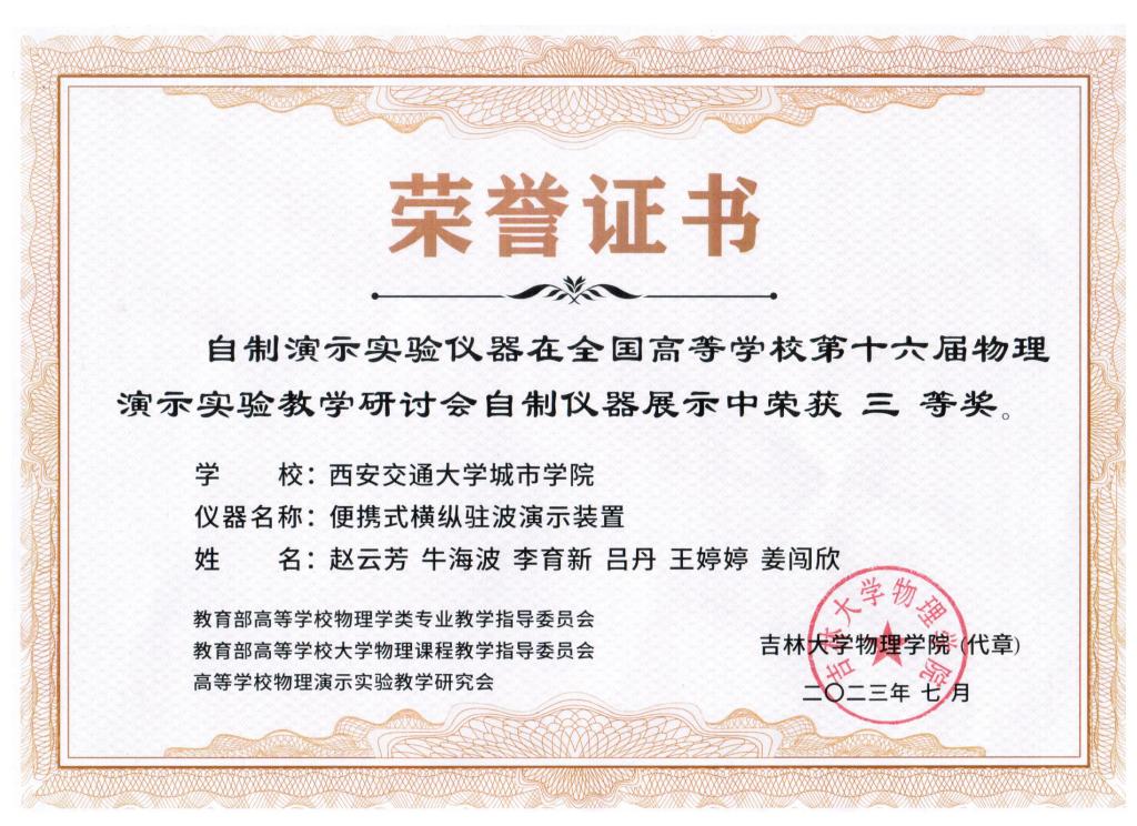 由教育部高等学校物理学类专业教学指导委员会、教育部高等学校大学物理课程教学指导委员会指导,全国高等学校物理演示实验教学研究会主办的“全国高等学校第十六届物理演示实验教学研讨会”于2023年7月14—18日在吉林省长春市吉林大学中心校区召开,物理教学部选派赵云芳、李育新两位老师参加了本次会议。