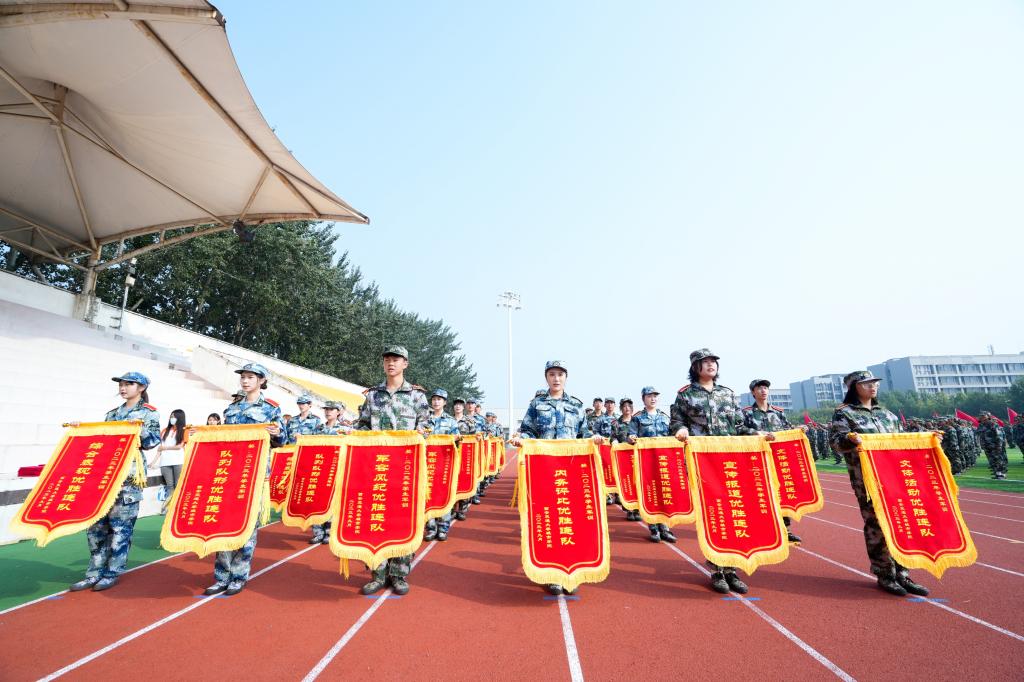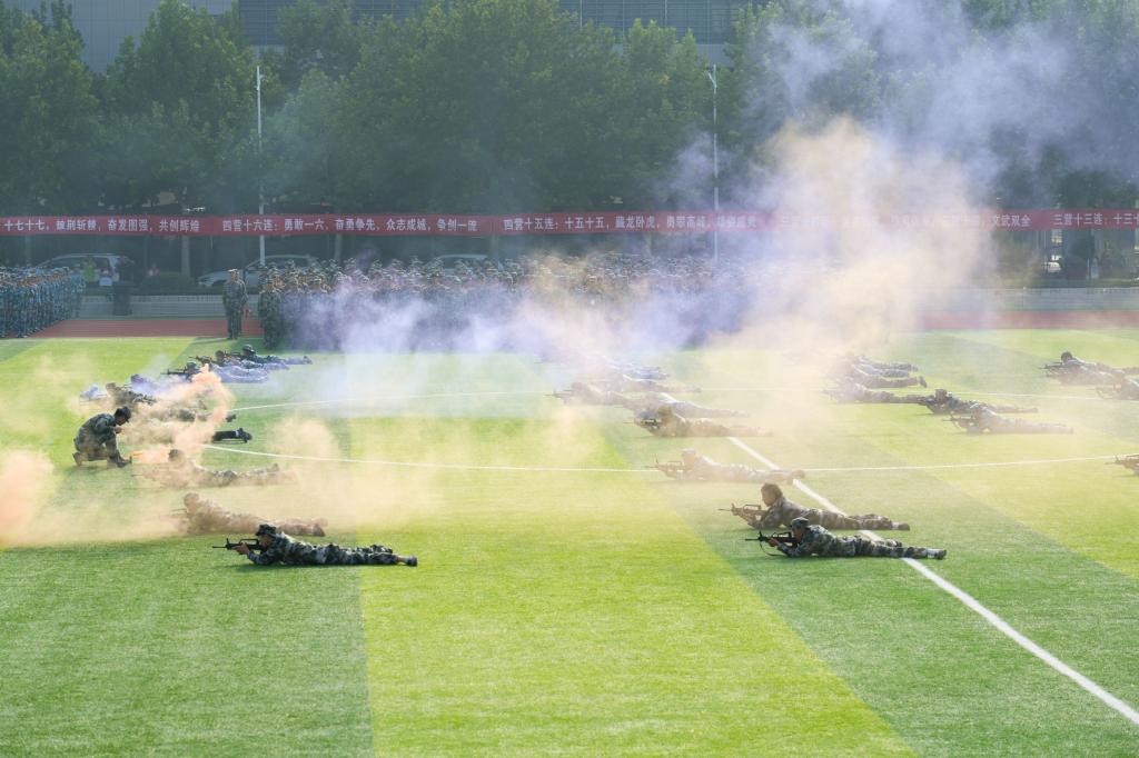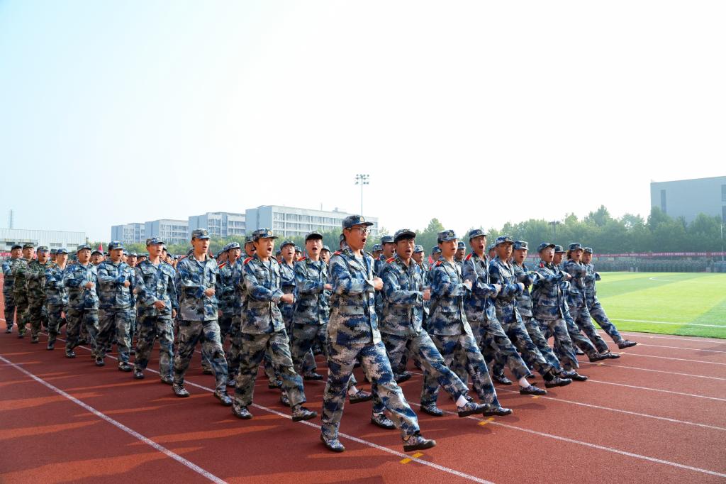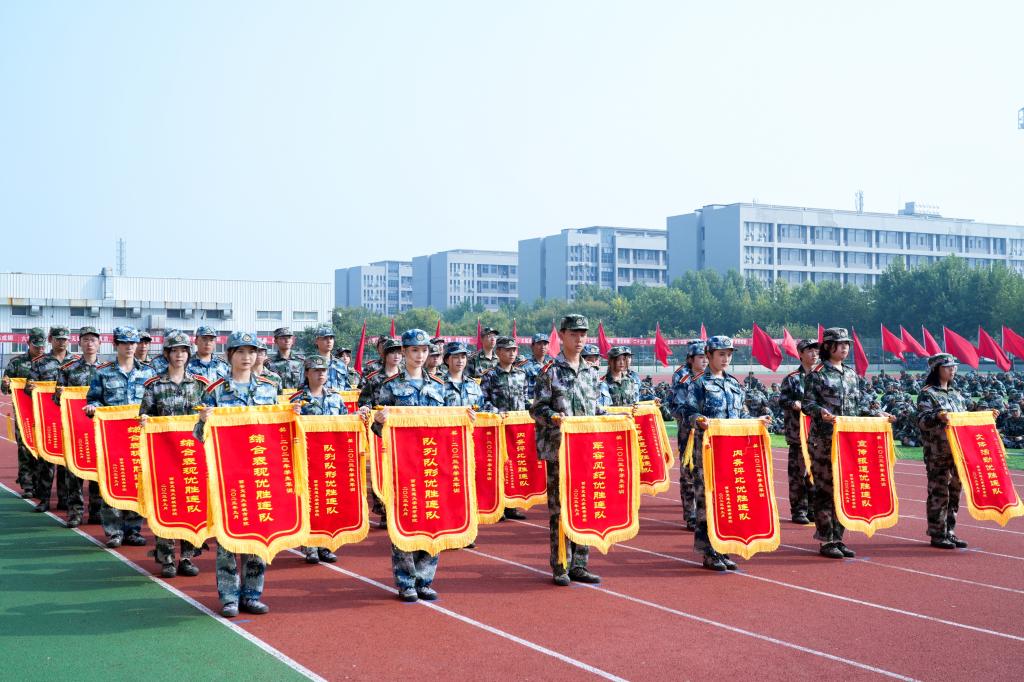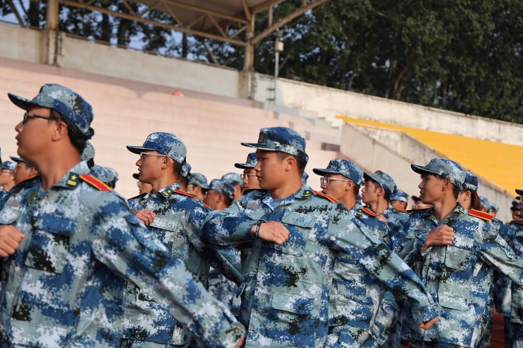 军训团政委辛红伟对本次军训工作进行总结汇报。14天来,同学们在教官、指导员的带领下,经受了炎炎烈日的考验,用健康的肤色、饱满的精神、整齐的步伐、昂扬的斗志完成了军训。希望大家在今后的学习和生活中不断发扬在军训中磨砺出的优良品质,志存高远,脚踏实地,敢于拼搏,努力在勤学实干中精进致远,勇于在攻坚克难中自强不息。