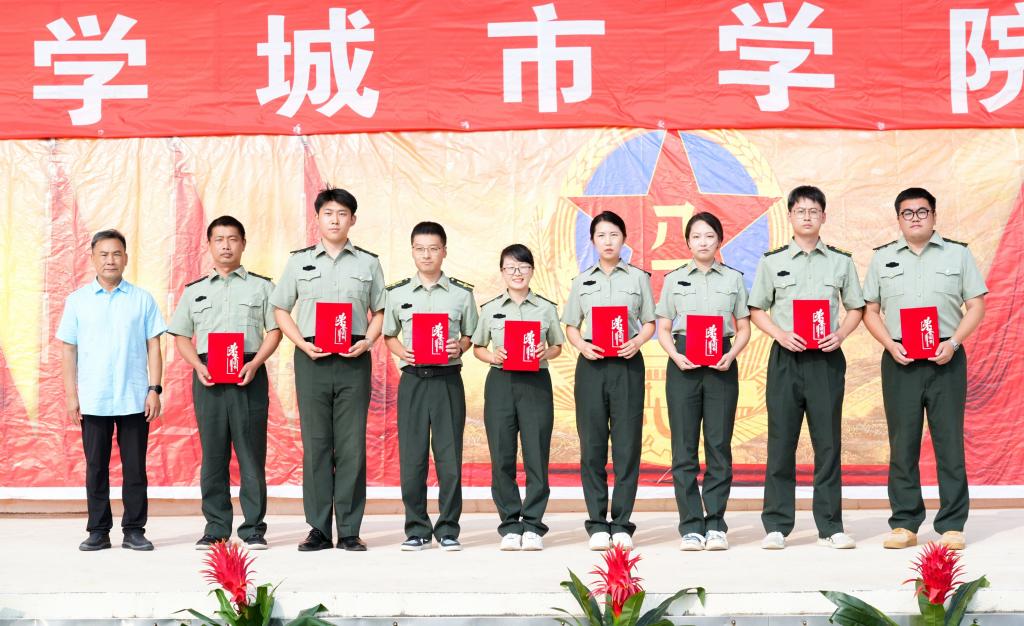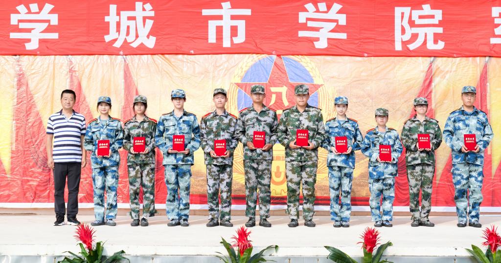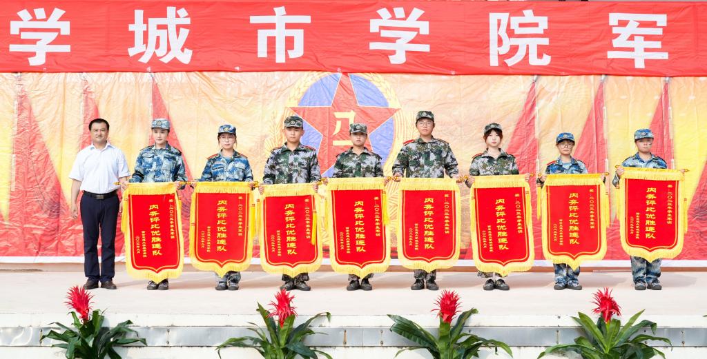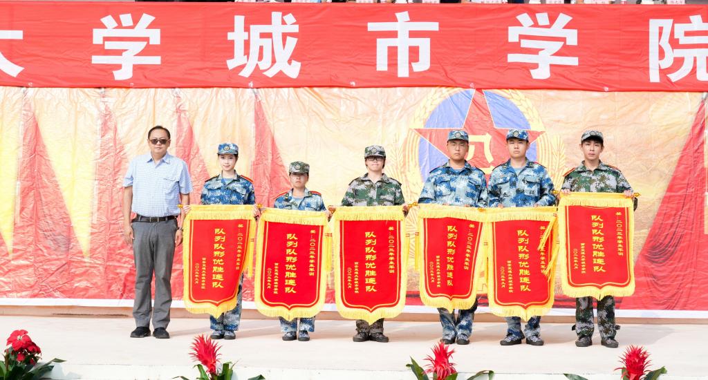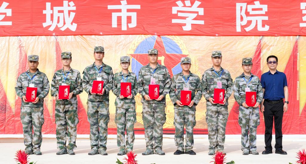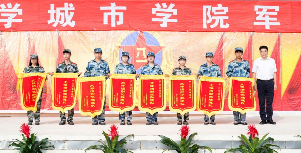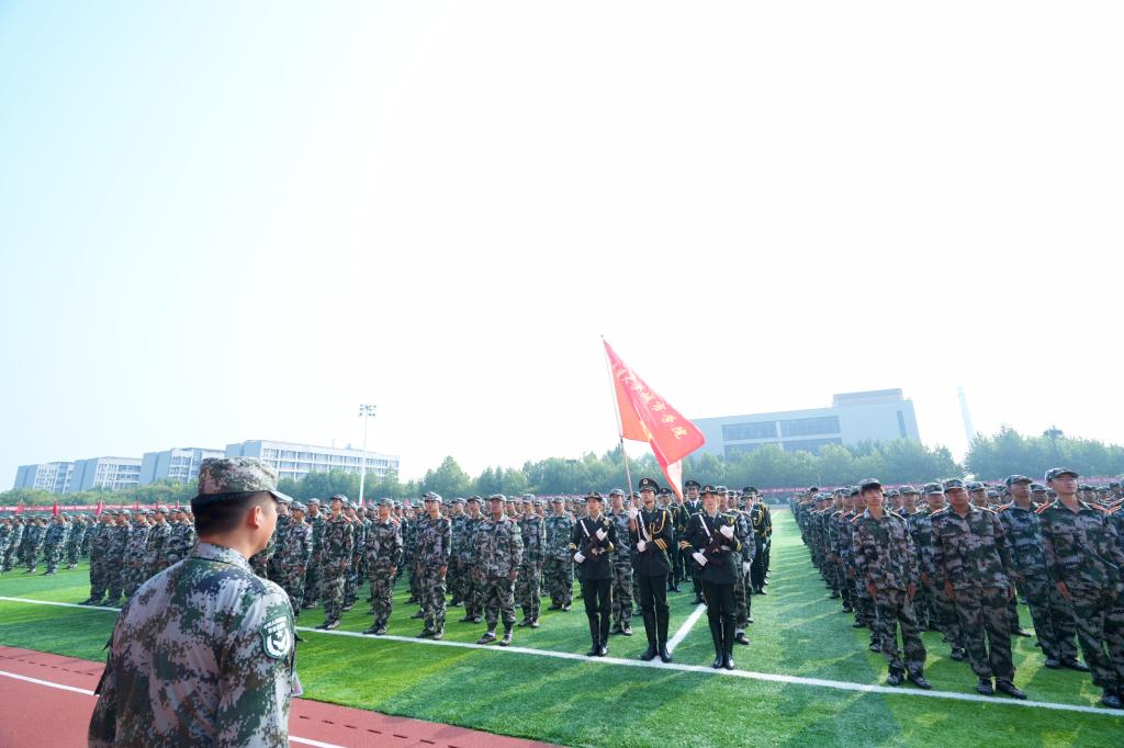 军训团政委辛红伟对本次军训工作进行总结汇报。14天来,同学们在教官、指导员的带领下,经受了炎炎烈日的考验,用健康的肤色、饱满的精神、整齐的步伐、昂扬的斗志完成了军训。希望大家在今后的学习和生活中不断发扬在军训中磨砺出的优良品质,志存高远,脚踏实地,敢于拼搏,努力在勤学实干中精进致远,勇于在攻坚克难中自强不息。