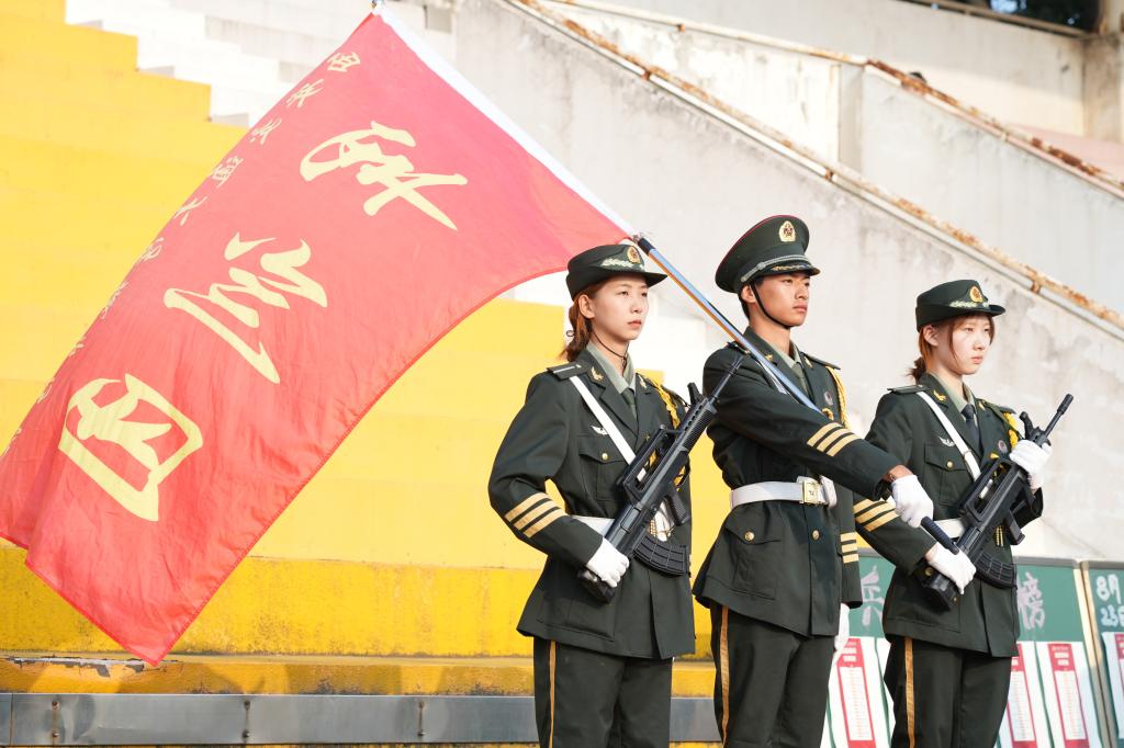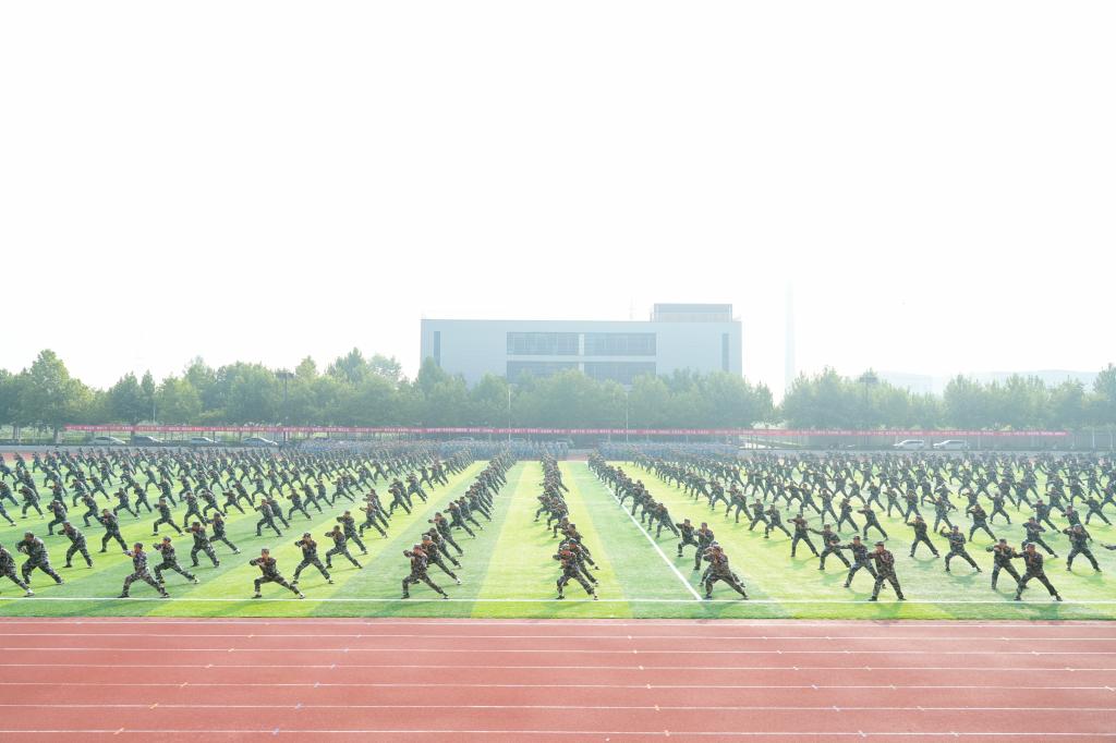 大会在庄严的国歌声中拉开帷幕。陈光德院长对本次军训情况进行检阅。随即,训练了14天的军训学员们开始了军训汇演成果展示,恢宏大气的舞旗方阵、整齐严肃的队列队形方阵、严阵以待的匕首操方阵、训练有素的战术方阵、孔武有力的军体拳方阵无一不体现着专属于军训生的风采。张爱萍书记宣读了军训表彰决定,学院领导为优秀连队、教官、指导员以及军训学员颁奖。