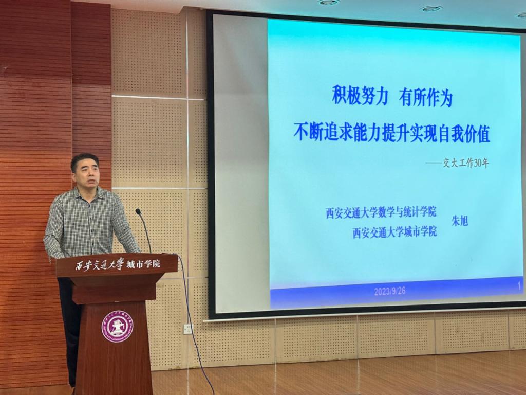 朱旭教授结合自身成长经历和从教30年的授课感悟,以“青年教师的成长与发展”为主题,从学校文化、我所经历三十年及从交大到城院三个方面,声情并茂地讲述了作为一名教师应站好三尺讲台,潜心育人,同时指出课程教学要上升为教育教学,不能简单的知识传授,要注重人才培养,提升教学水平的关键是提高研究能力。参会教师们纷纷表示获益匪浅。